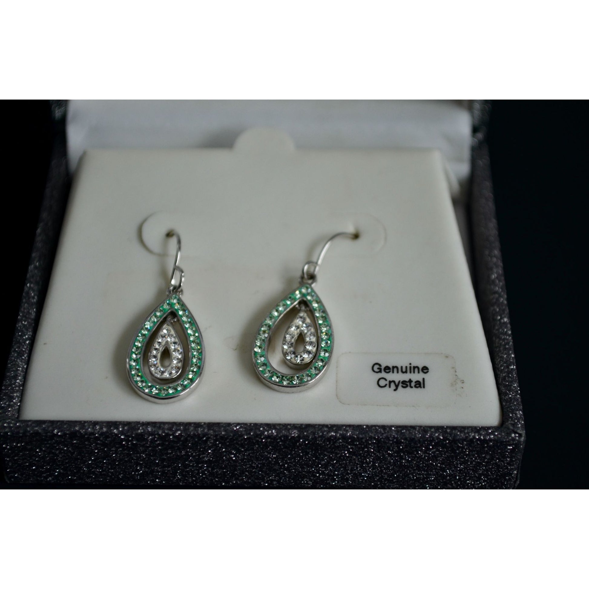 Green & White Genuine Crystal Teardrop Earrings Silver Plate New