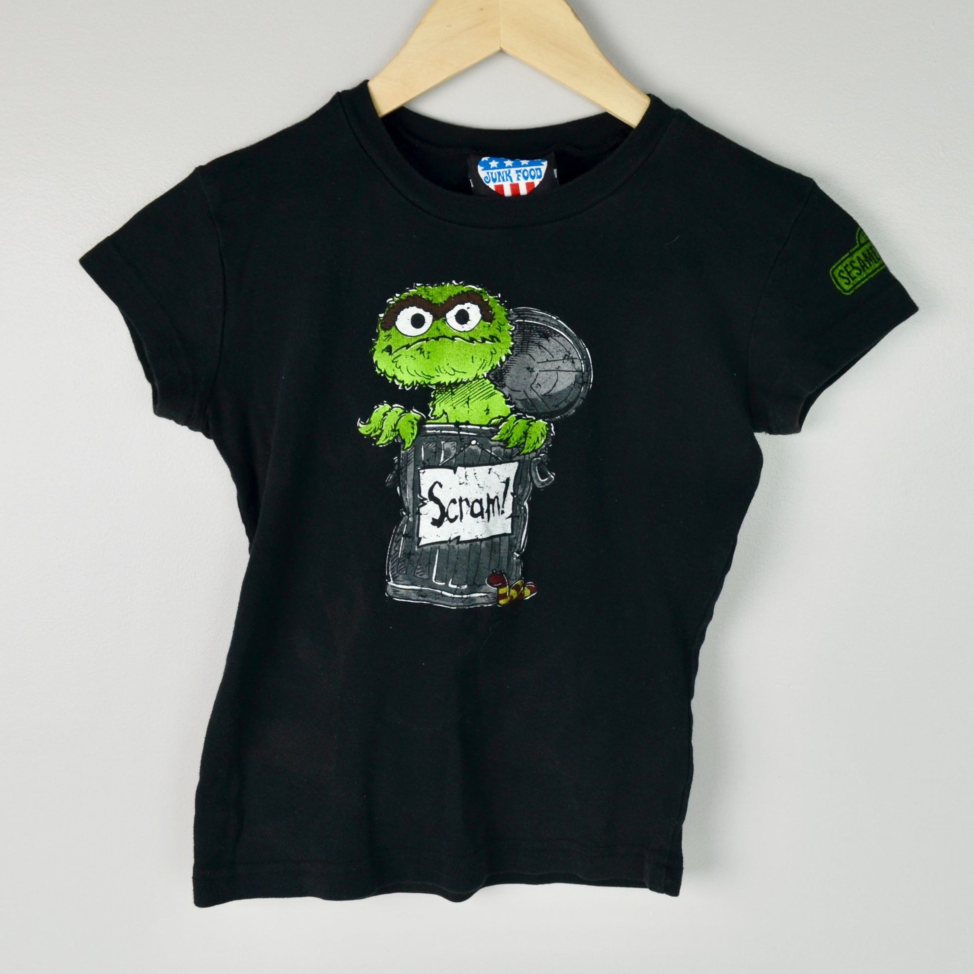 Junk Food Oscar the Grouch Scram Vintage Junior's Small Black Tee