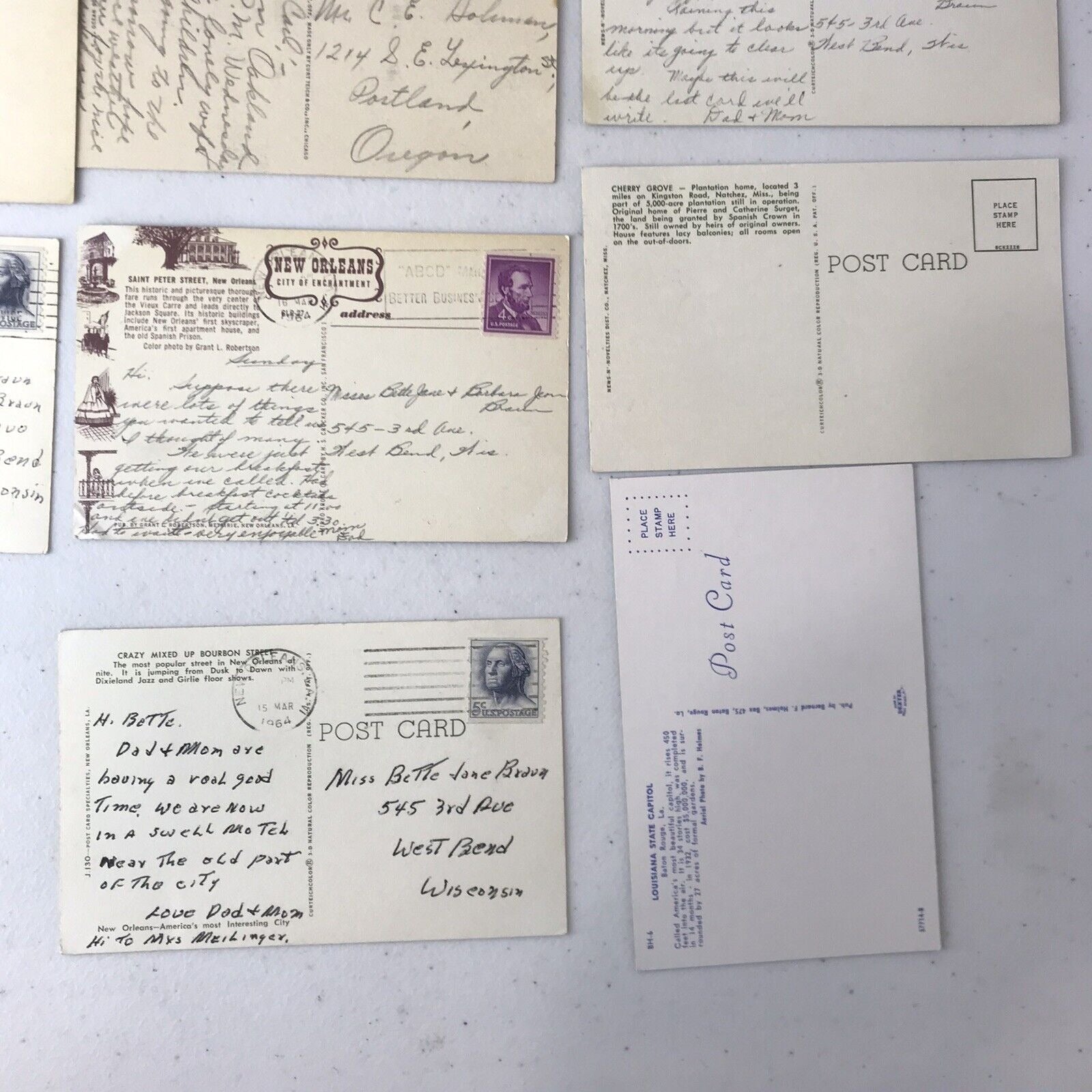 All postcards show some wear. Some have writing on them. See pics for what you get. Very cool old postcards.