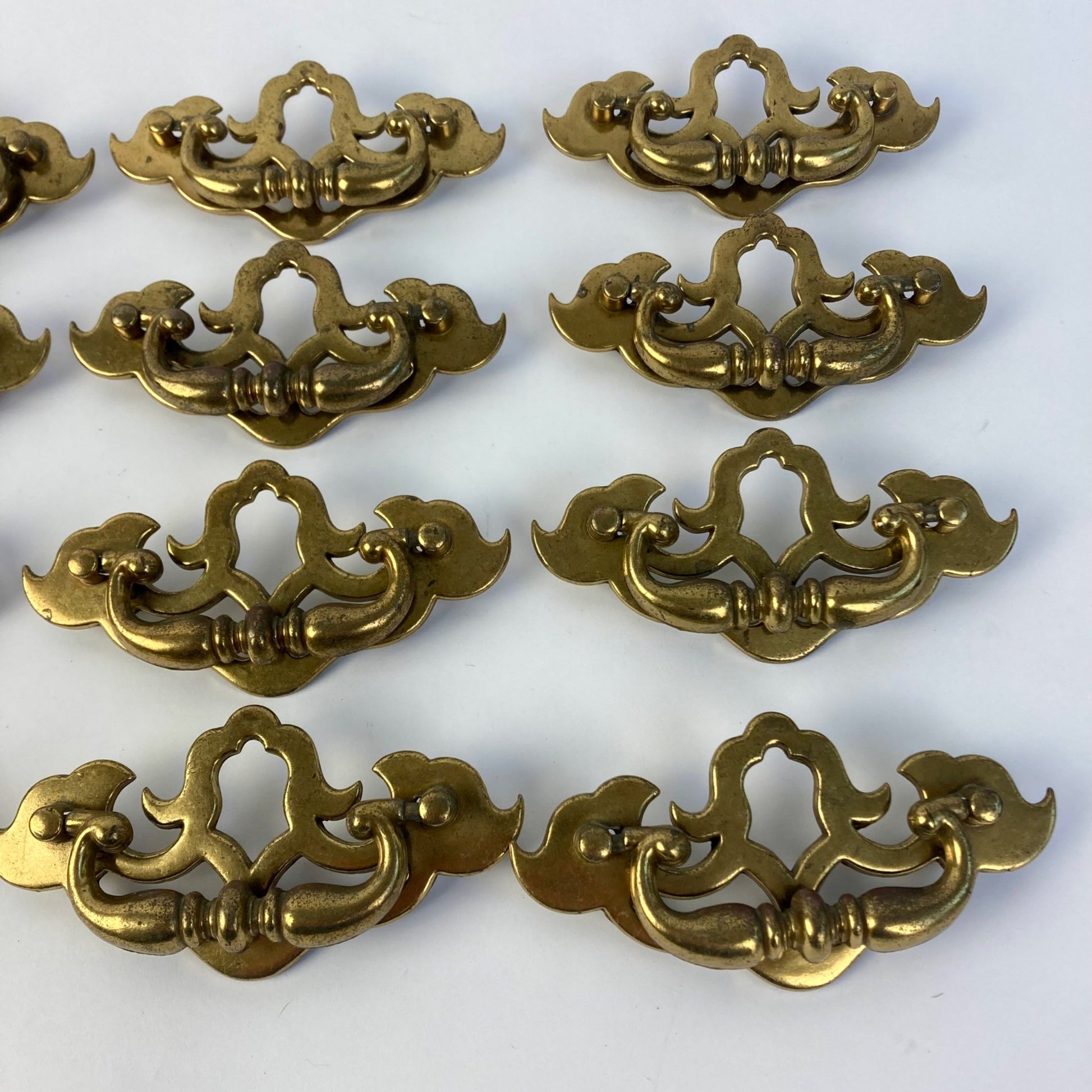 Lot of 12 Vintage Gilded Brass Drawer Pulls 657 Batwing Drop Bail
