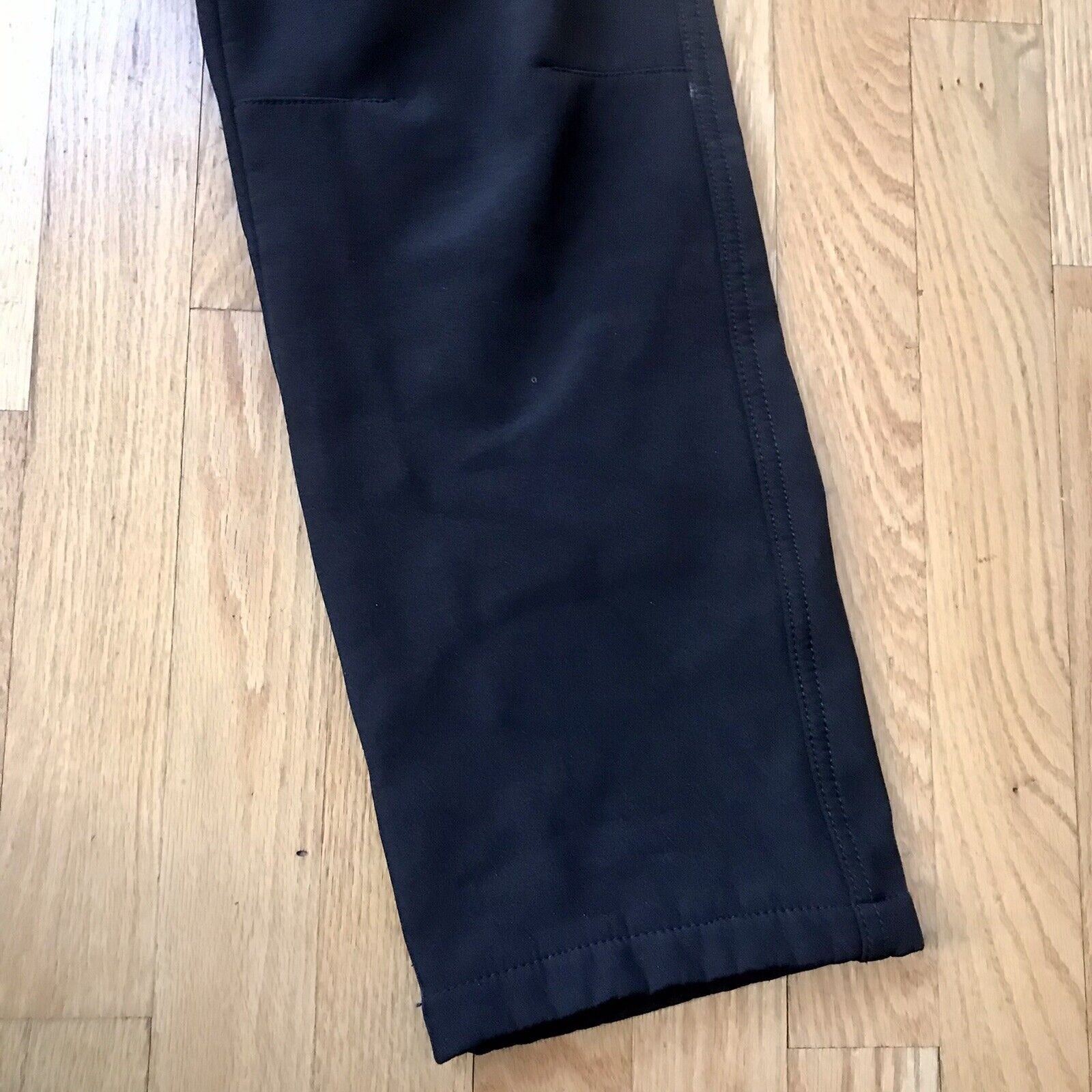 The inseam measures approximately 31 inches long. Waist is elastic and stretches from 26-36 inches or so. They are slightly used but in excellent condition. Comes from a non smoking home. These are nice winter pants, ready for your next outdoor adventure!