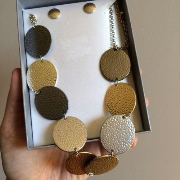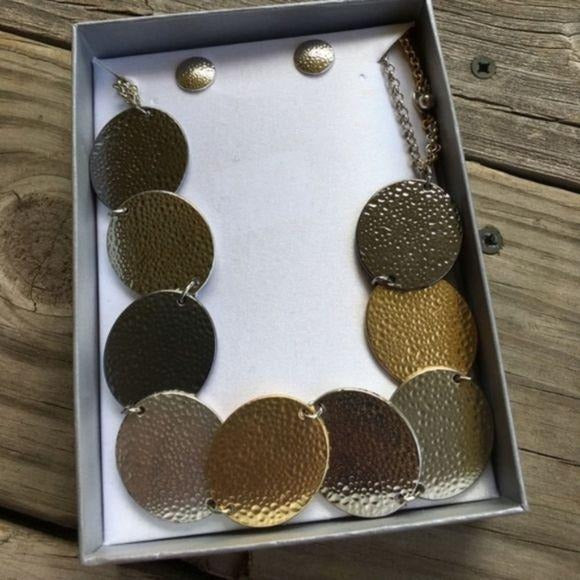 NEW Mixed Metals Circle Necklace & Earrings Set