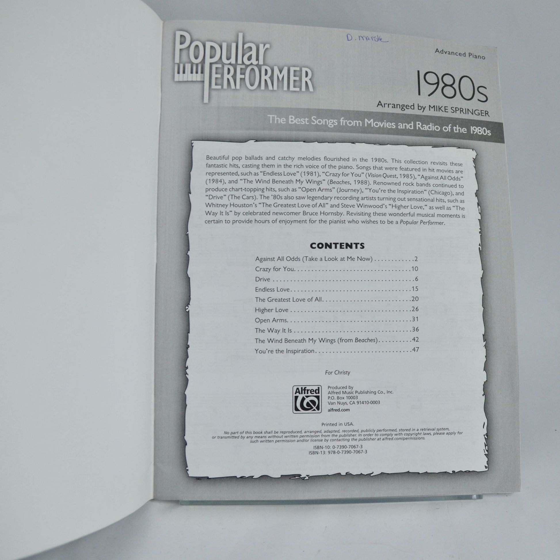 Popular Performer Series 1980s Best Songs Movies Radio Mike Springer Piano Book