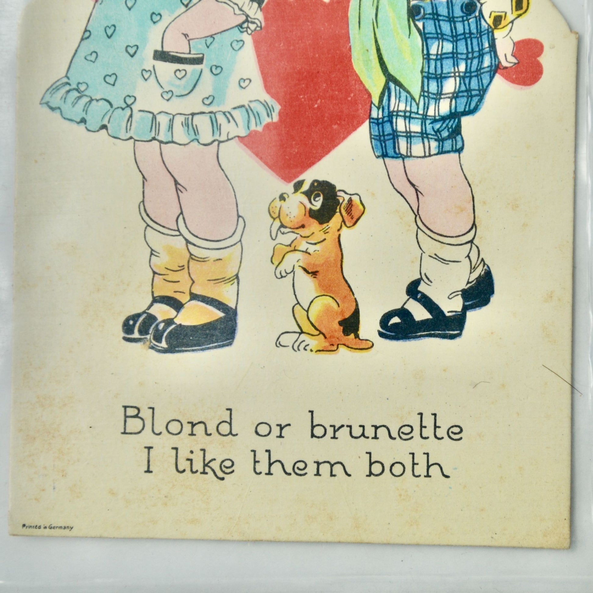 RARE Vintage Valentine Card Blonde or Brunette I Like Them Both HAIR