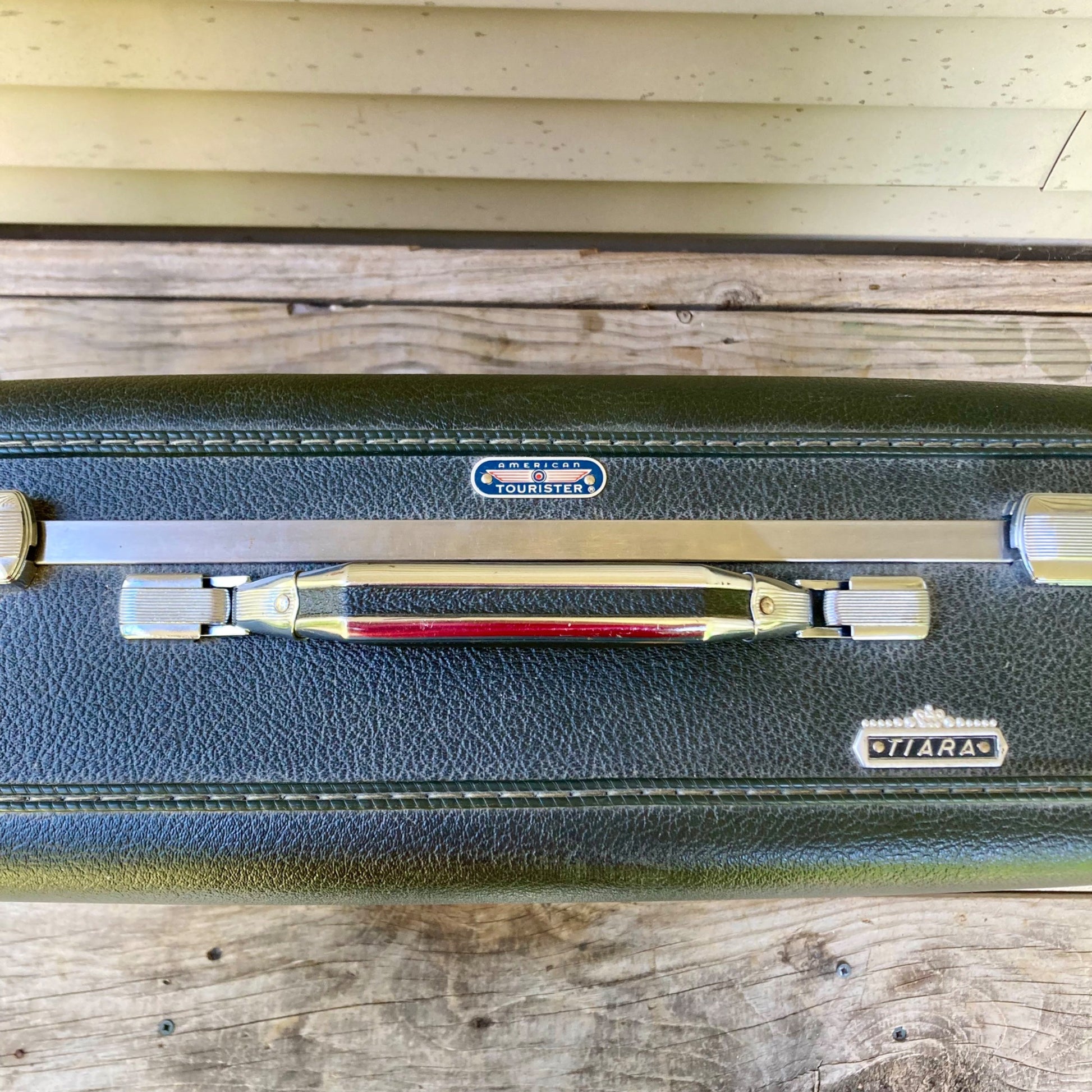 Set 2 Vintage American Tourist Tiara Suitcases Green Hard Shell Luggage NO KEY