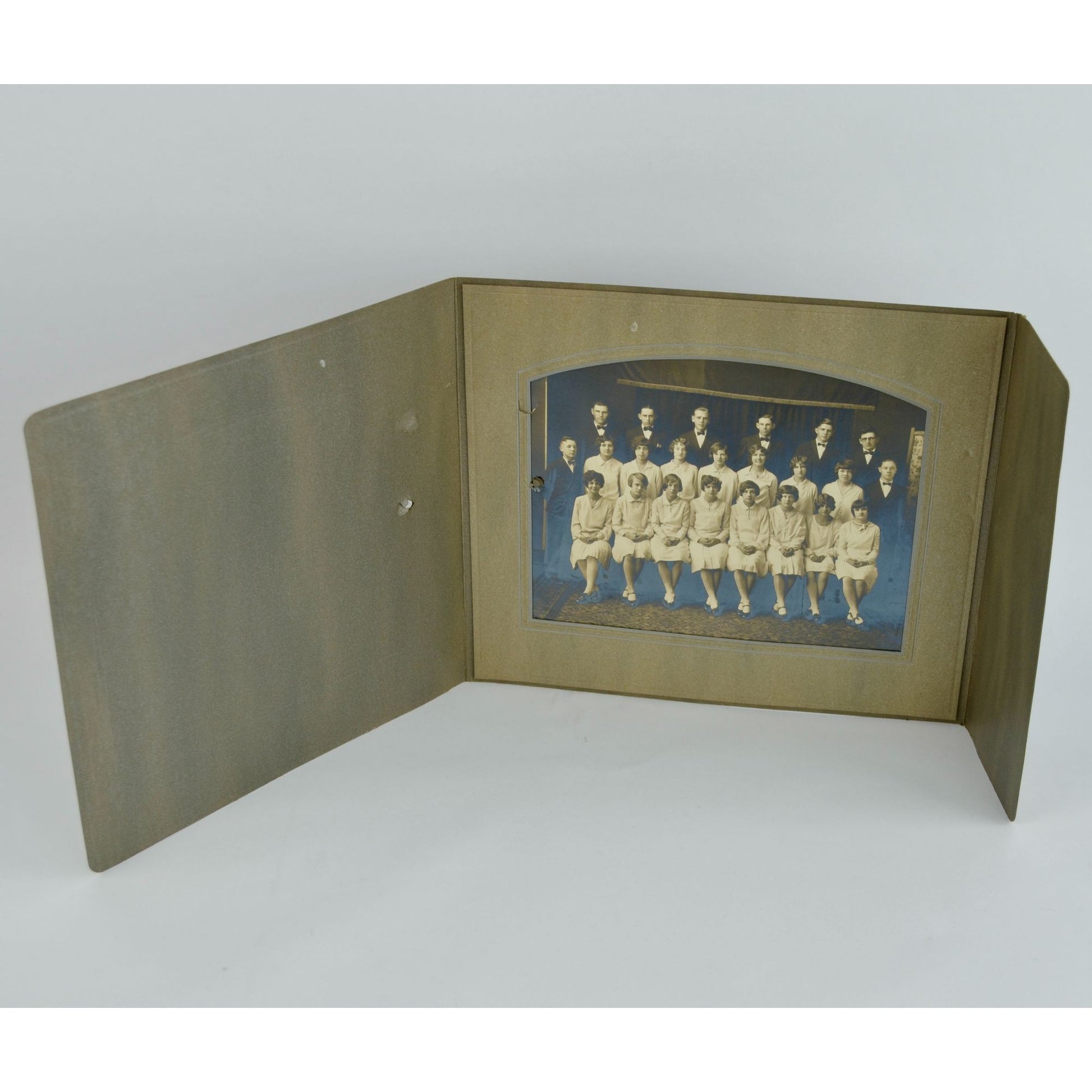Unsure who this group of people are. Photograph is stamped by the photo studio "Kranz Studio Springfield, Minn." Photo is glued into the cardboard frame. Frame opening is about 9.25 x 7.5." There is some slight damage on the left side of the image, see photos.