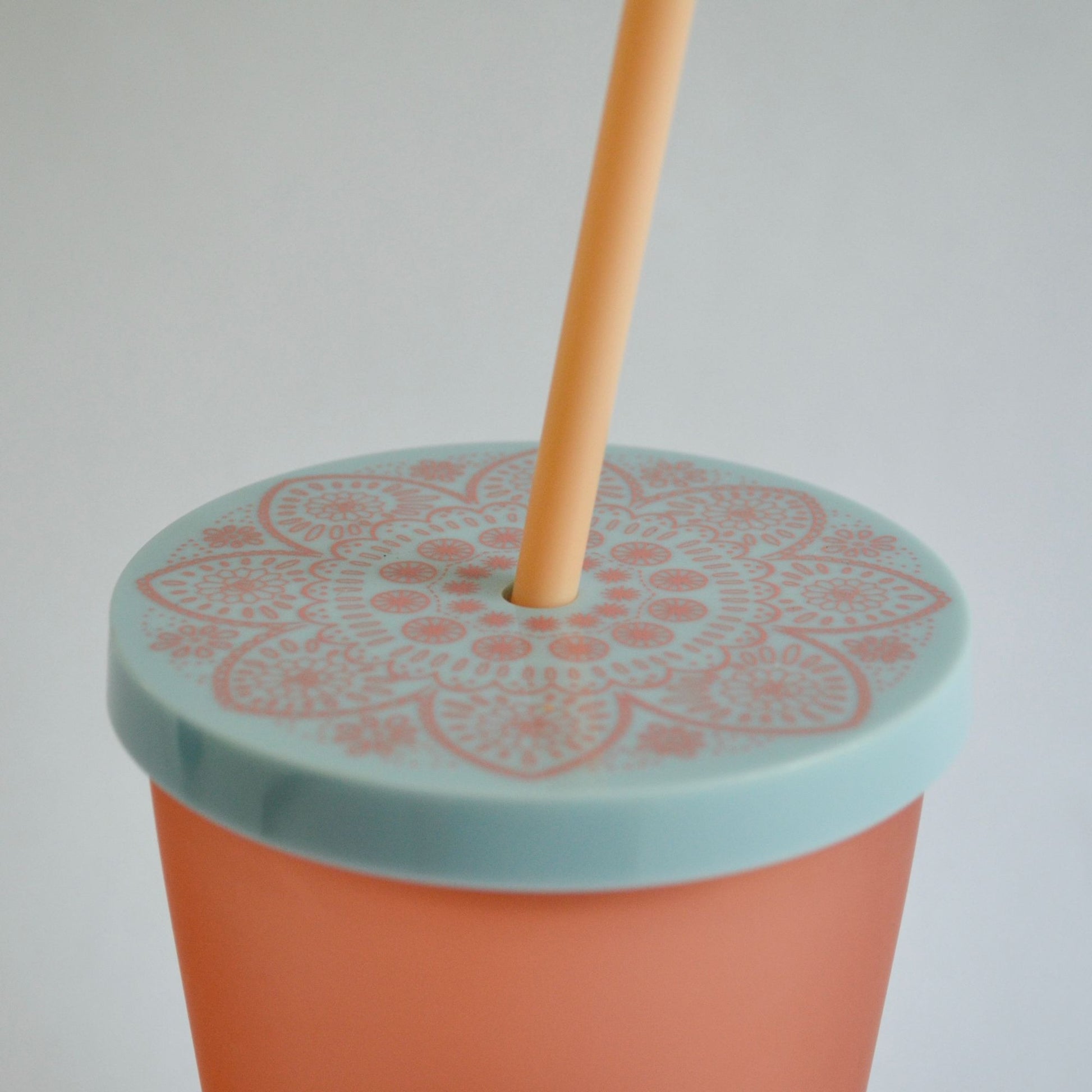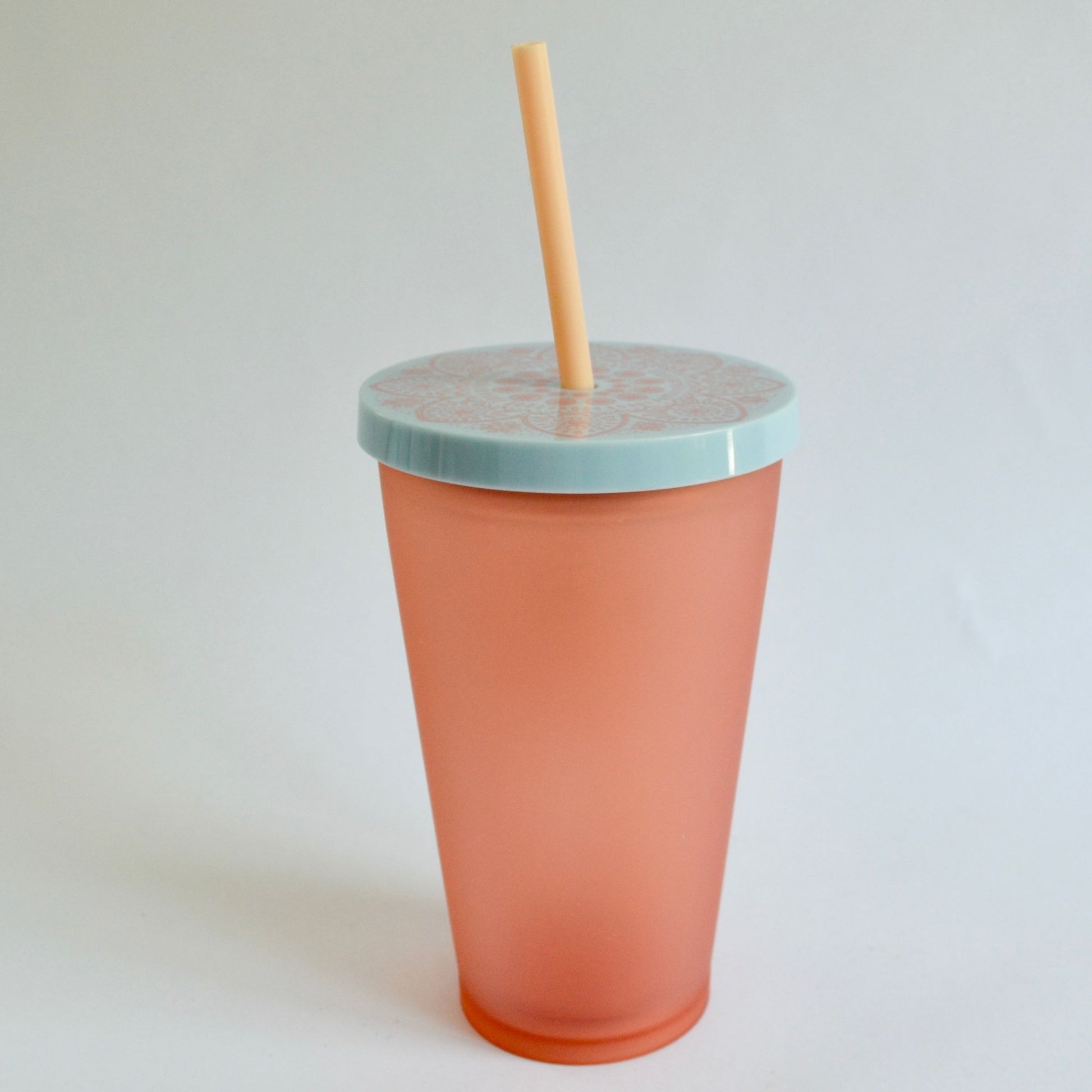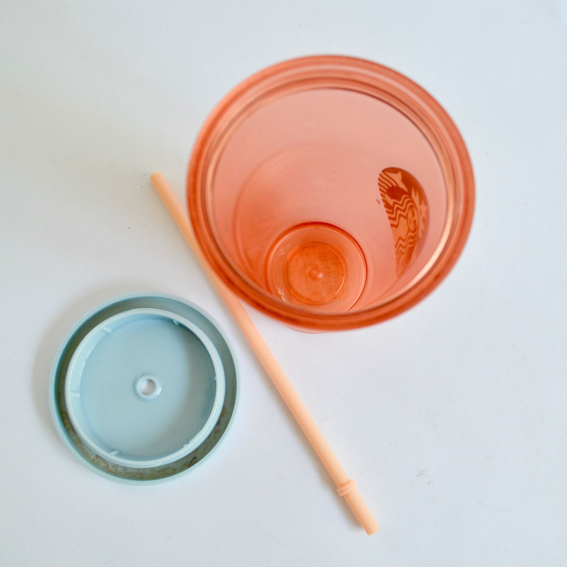 STARBUCKS FROSTED PINK 16 Oz COLD CUP TRAVEL TUMBLER with STRAW