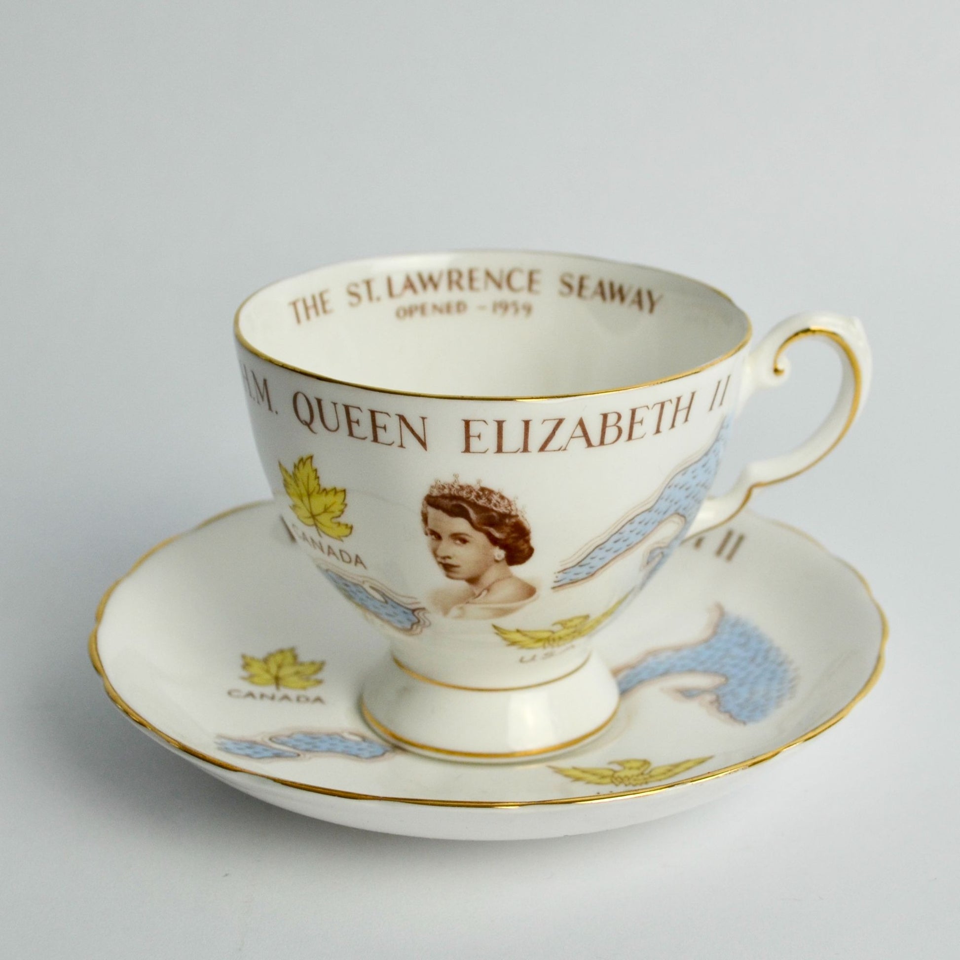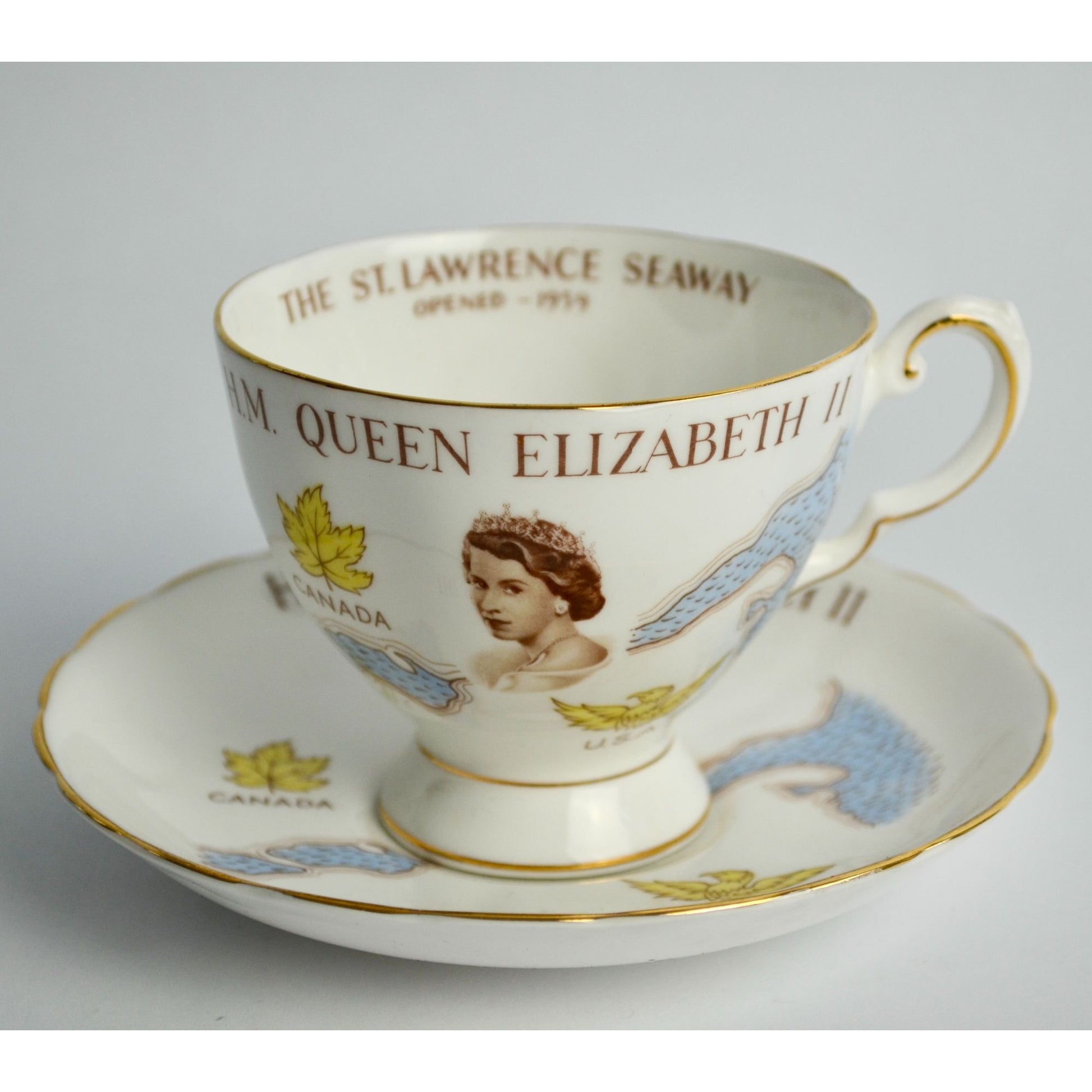 Tuscan H.M. Queen Elizabeth II St. Lawrence Seaway 1959 Cup Saucer