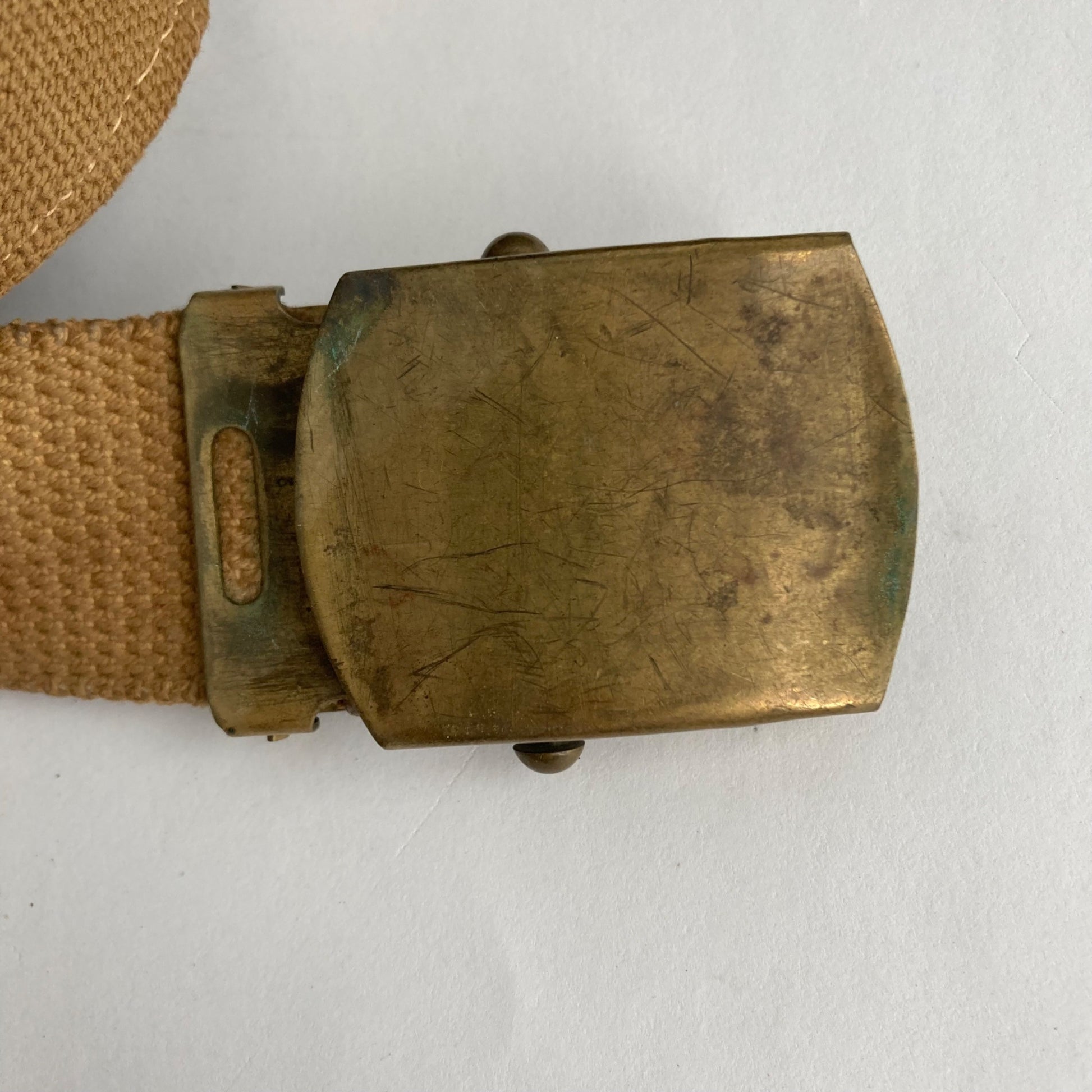 Metal box shows normal wear/aging (also has some light denting in the back but not real noticeable). Not sure if it's military or not but came with the military items in it. Included is the tan belt and lubricating oil can - both show wear/aging as well. Very cool, old military pieces!