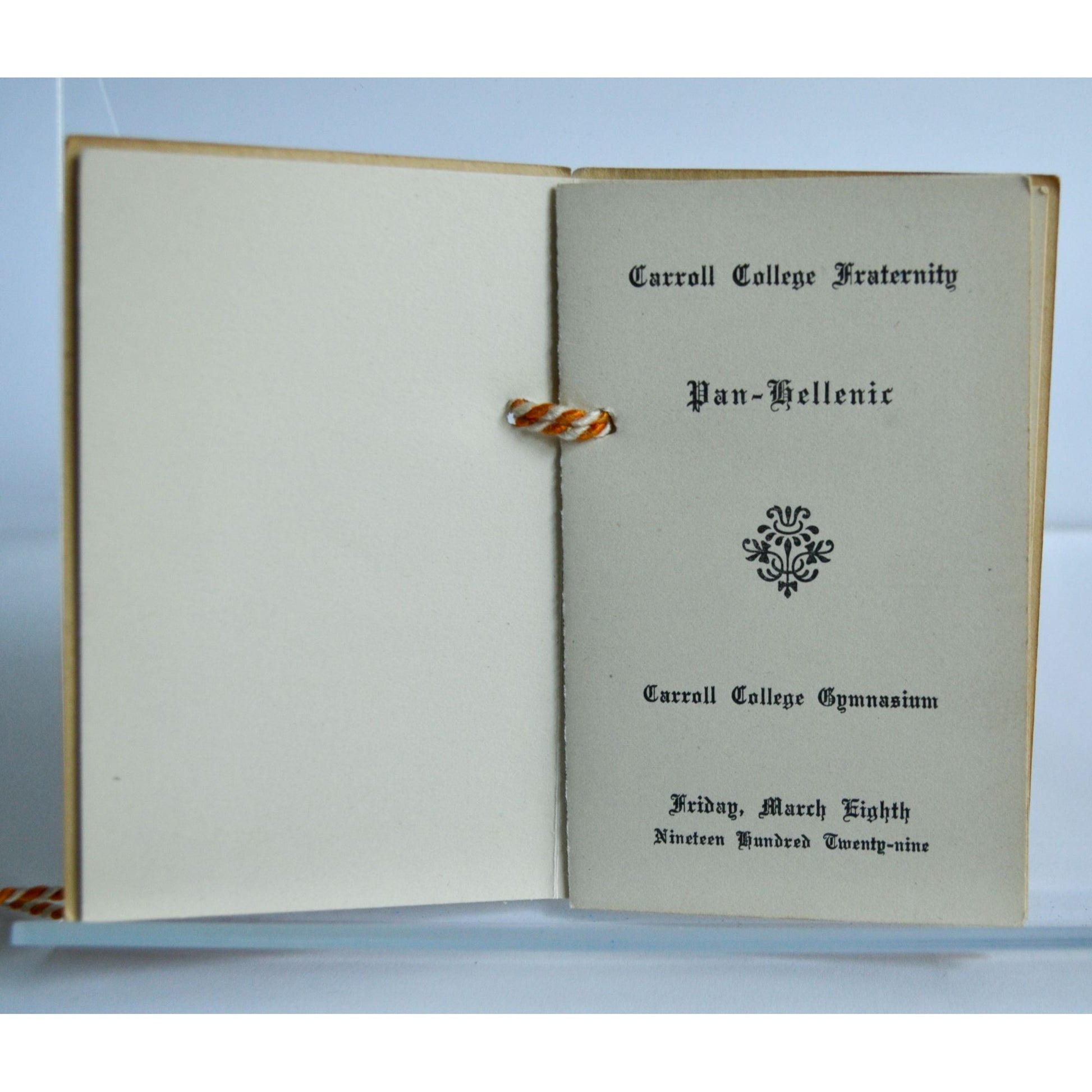 Vintage 1929 Carroll College Fraternity Dance Card