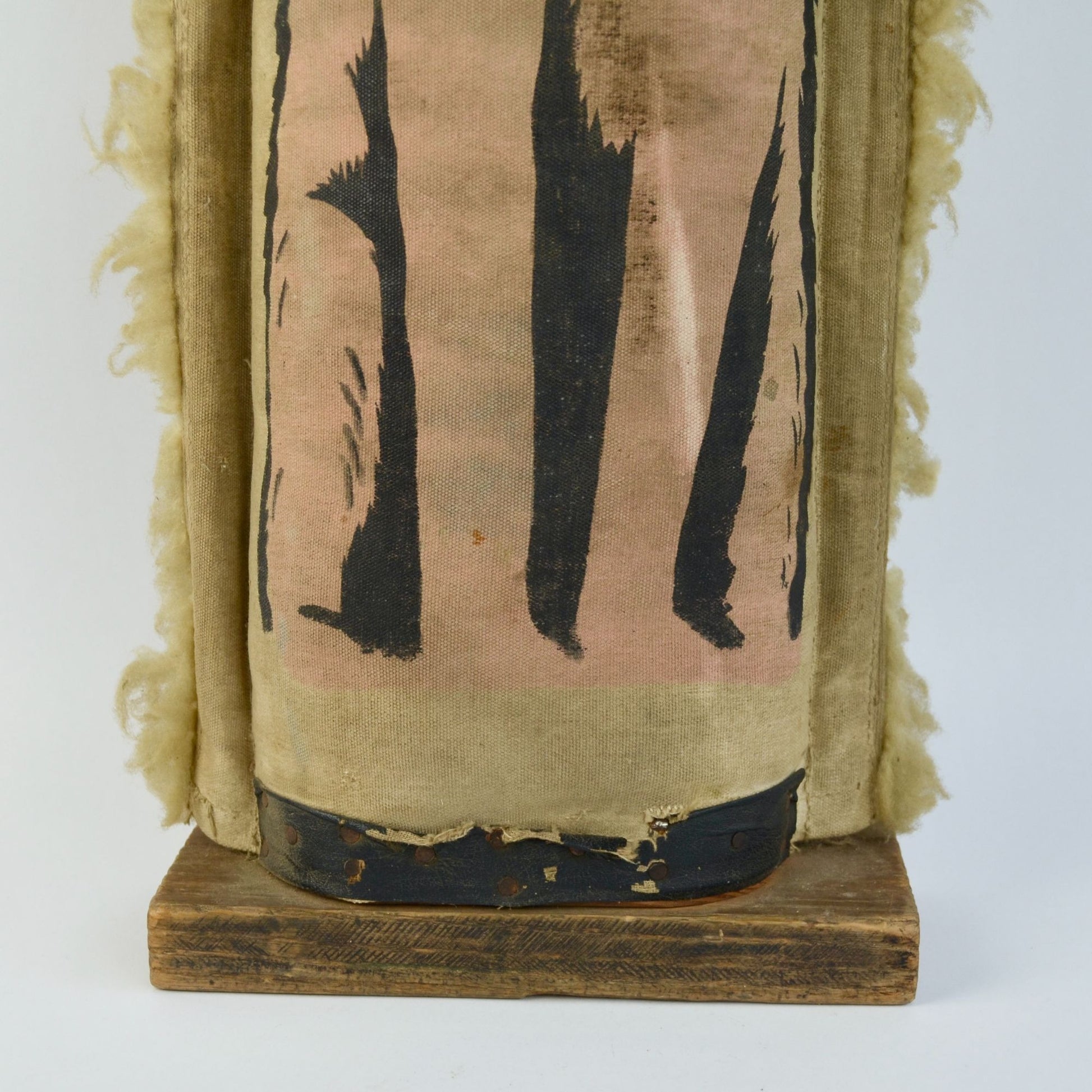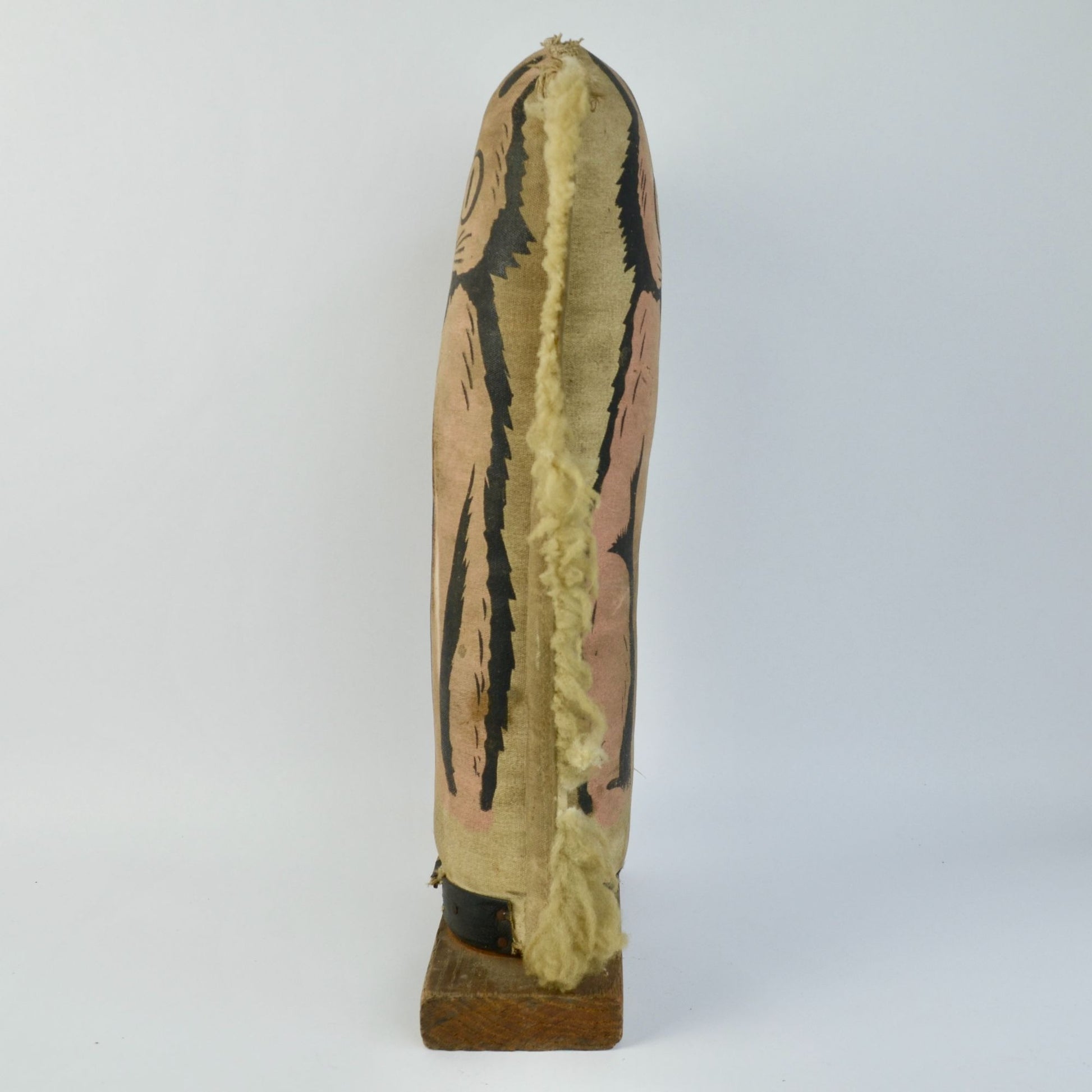 They often feature hand-painted faces and were sometimes decorated with fur or other materials.