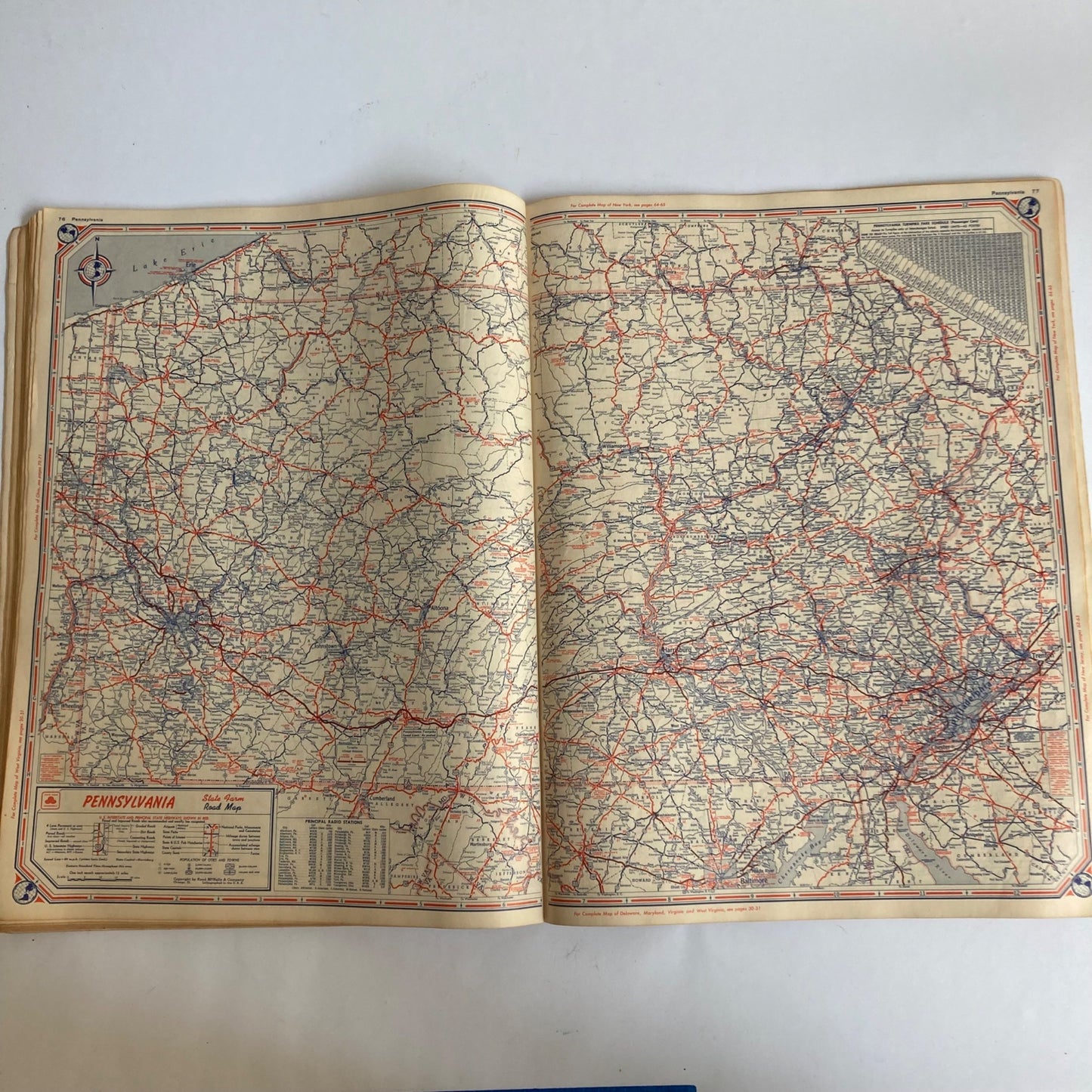 Atlas shows wear and aging. Pages are yellowed. Cover shows wear. Pages show edge wear. Pages inside are clean and all there though. Very cool, old road atlas. This is pre-Interstate, when people actually got their kicks on Route 66. Ships quick!
