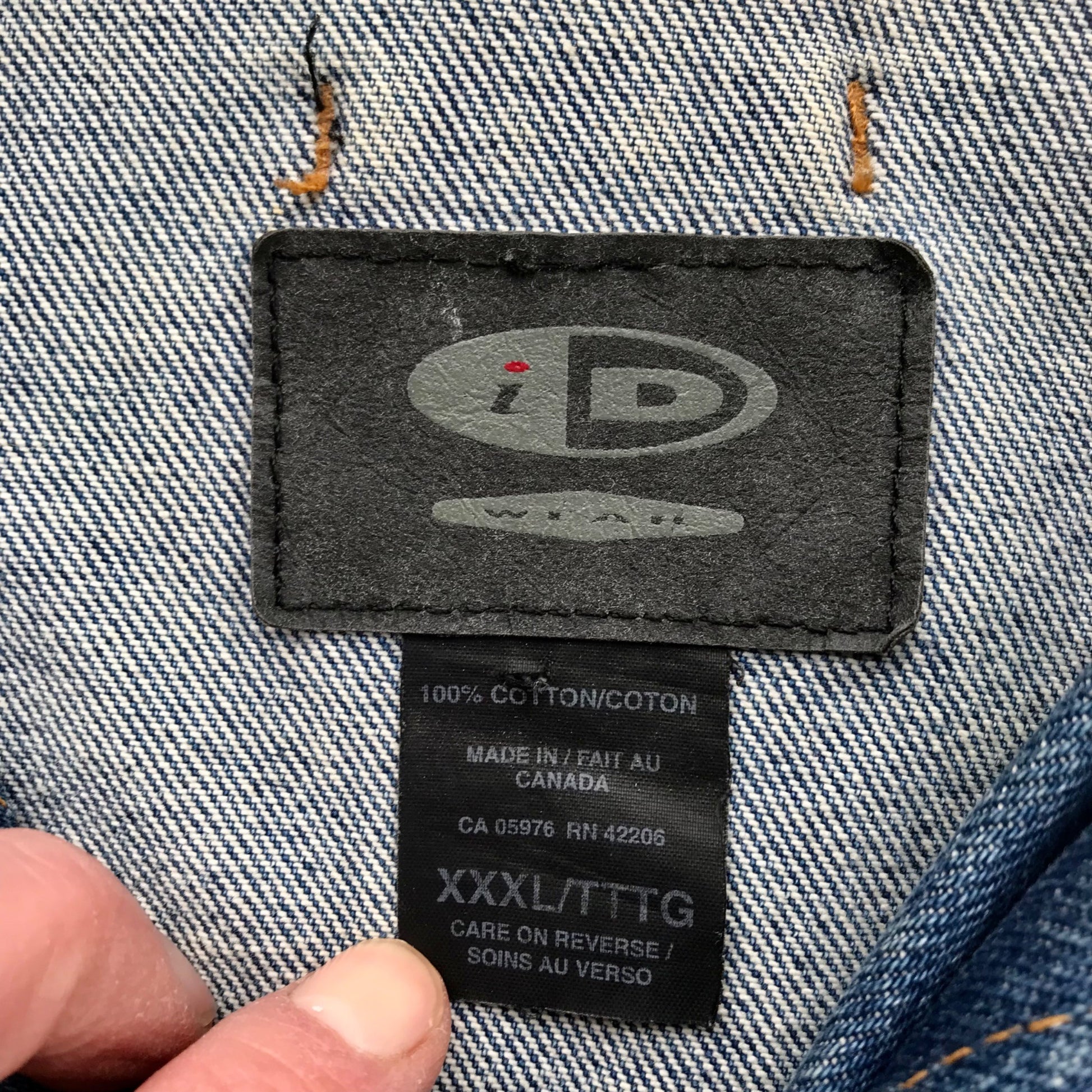 Hard to find Back to the Fifties jean jacket! This is from the 2001 show. Jacket has some soiling around the neck area and some light discoloration to the sleeves in spots. Has a great worn, vintage look though! Men's size 3XL.