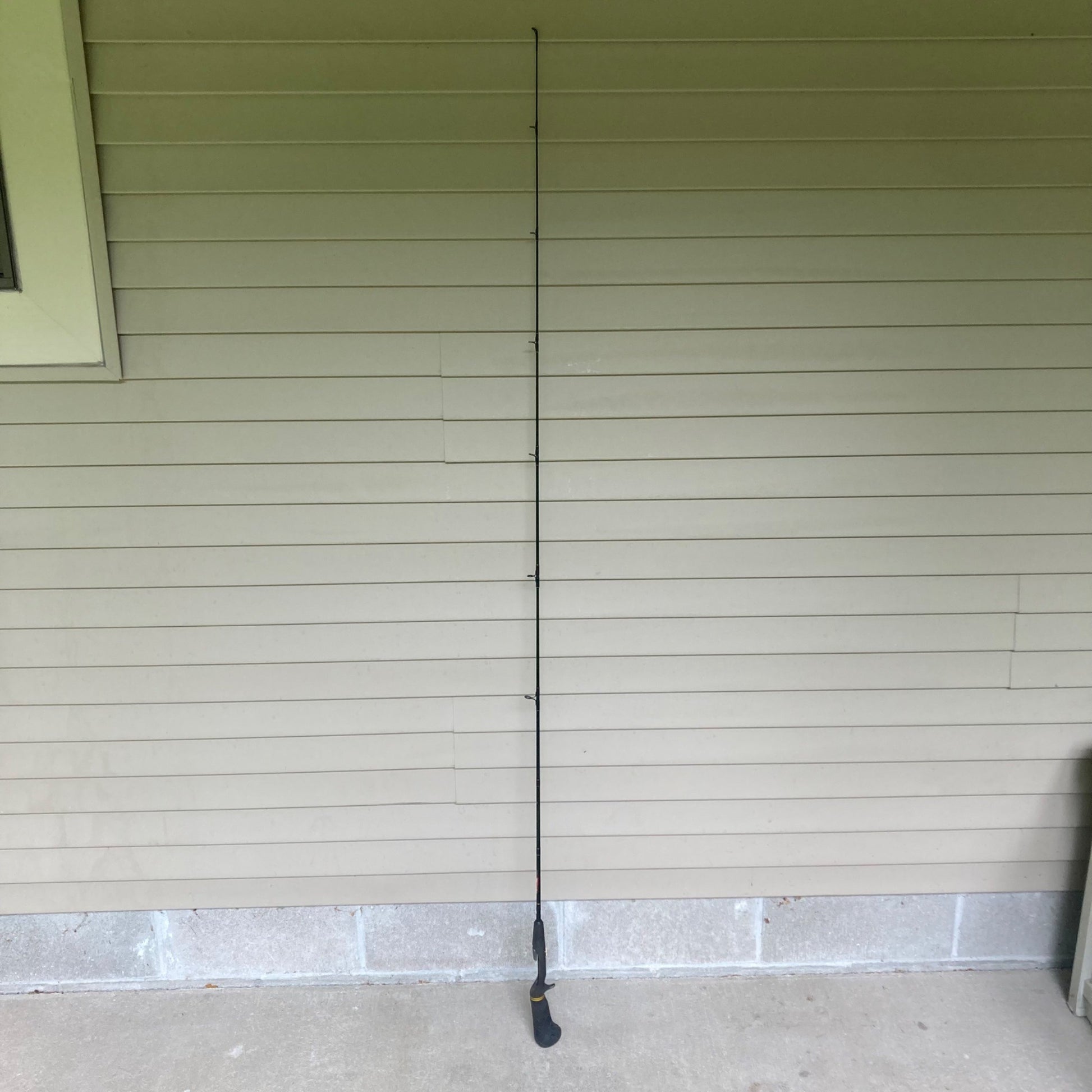 This is a 6', 2-piece casting rod with pistol grip style handle. There's a little white paint on the top of the handle/bottom of rod (see pic), otherwise it's in excellent, clean condition.