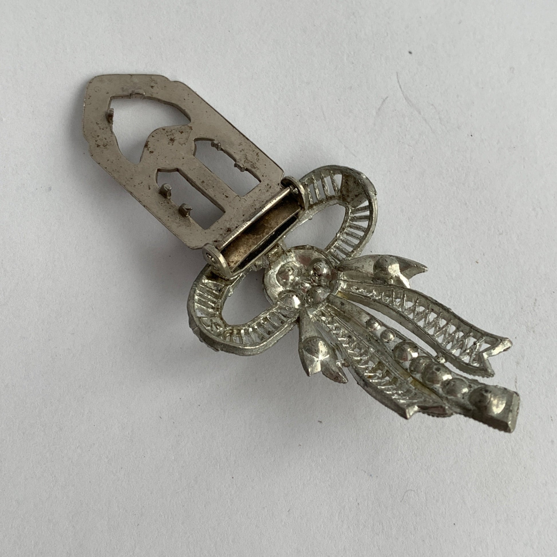 Vintage Art Deco Dress Clip Silver Rhinestone Ribbon Bow