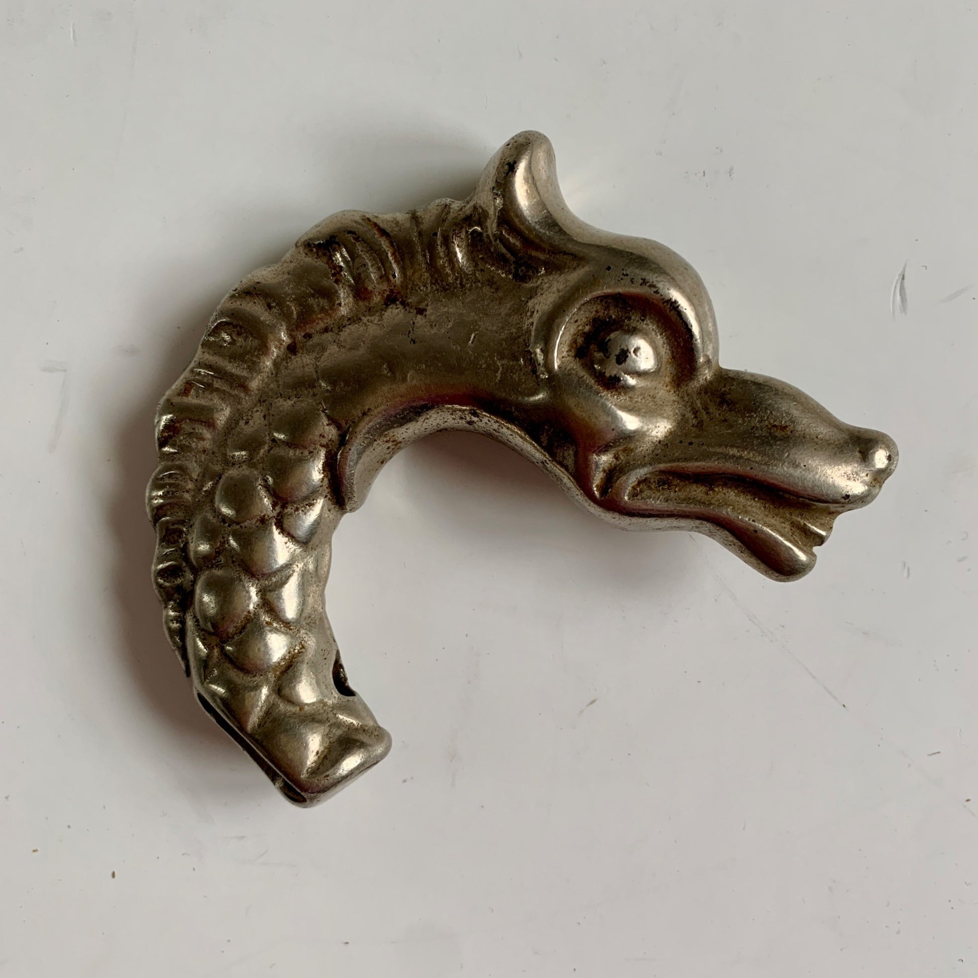 Vintage Dragon Head Walking Cane Handle Topper Hood Ornament Metal HEAVY!