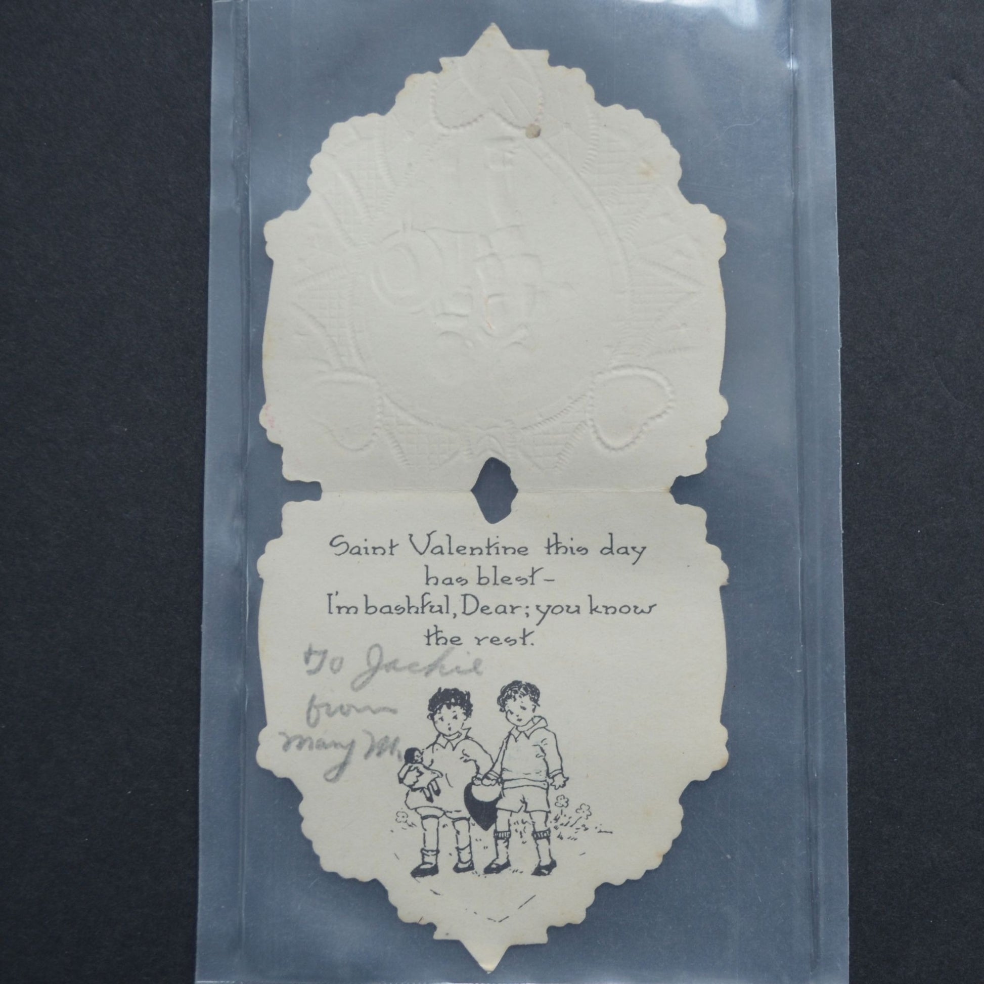 Vintage Embossed Die Cut Valentine Card Boy Girl Fence