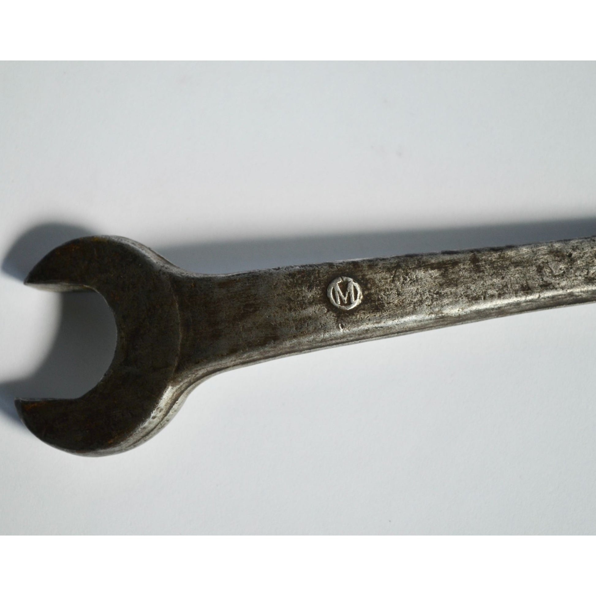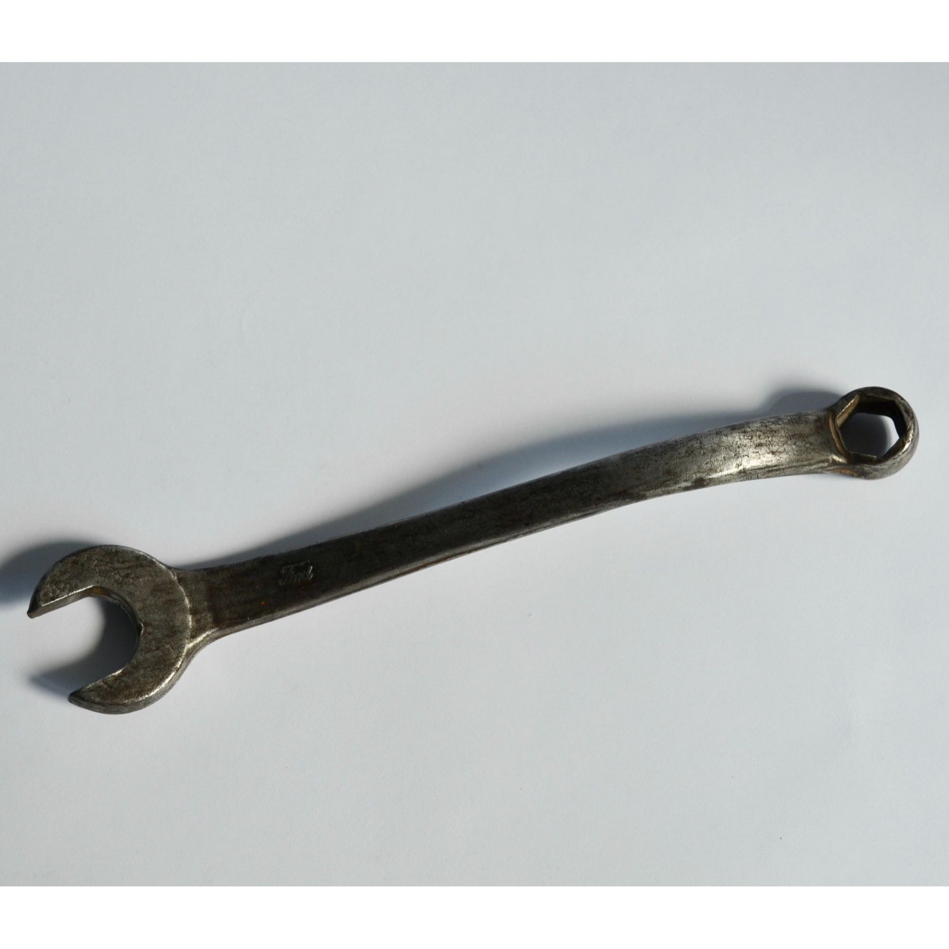 The open end measures 1 inch, the box end is a little harder to measure but looks to be just under 3/4 inch. Wrench shows some normal wear, but in overall good condition. Stamped "M" and "48" on one side and "Ford" on the other.