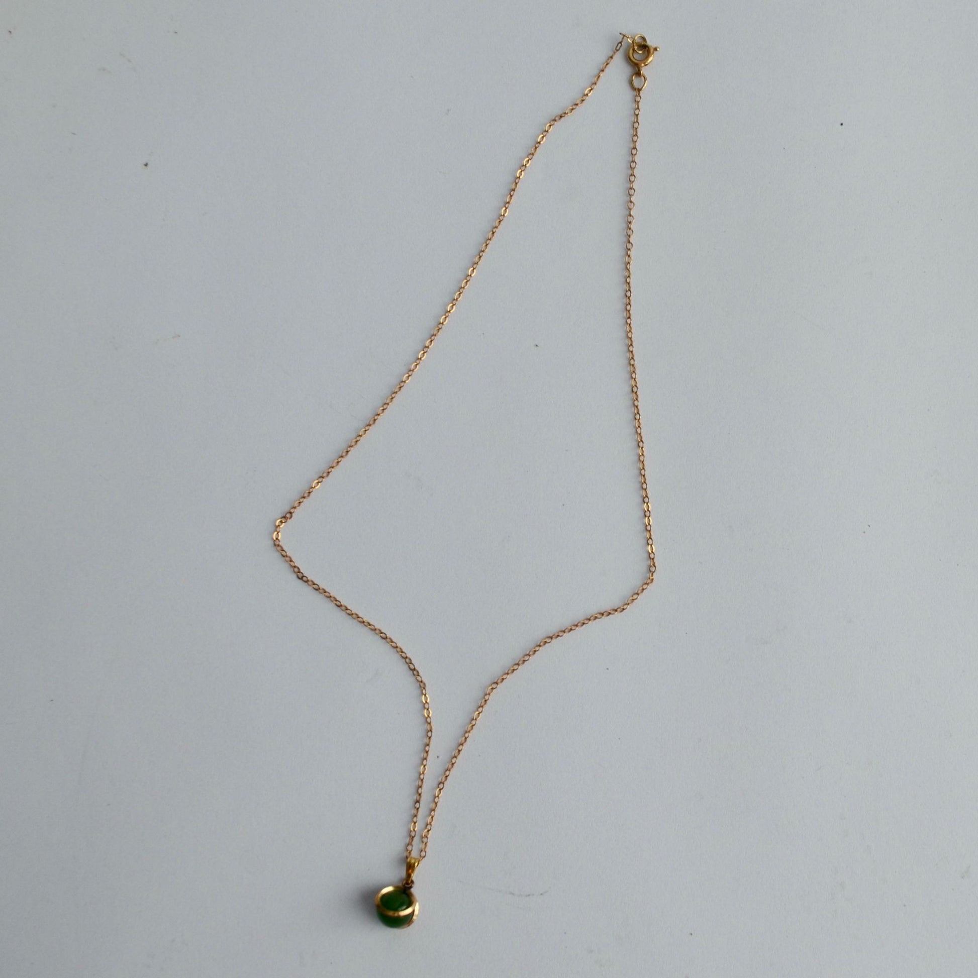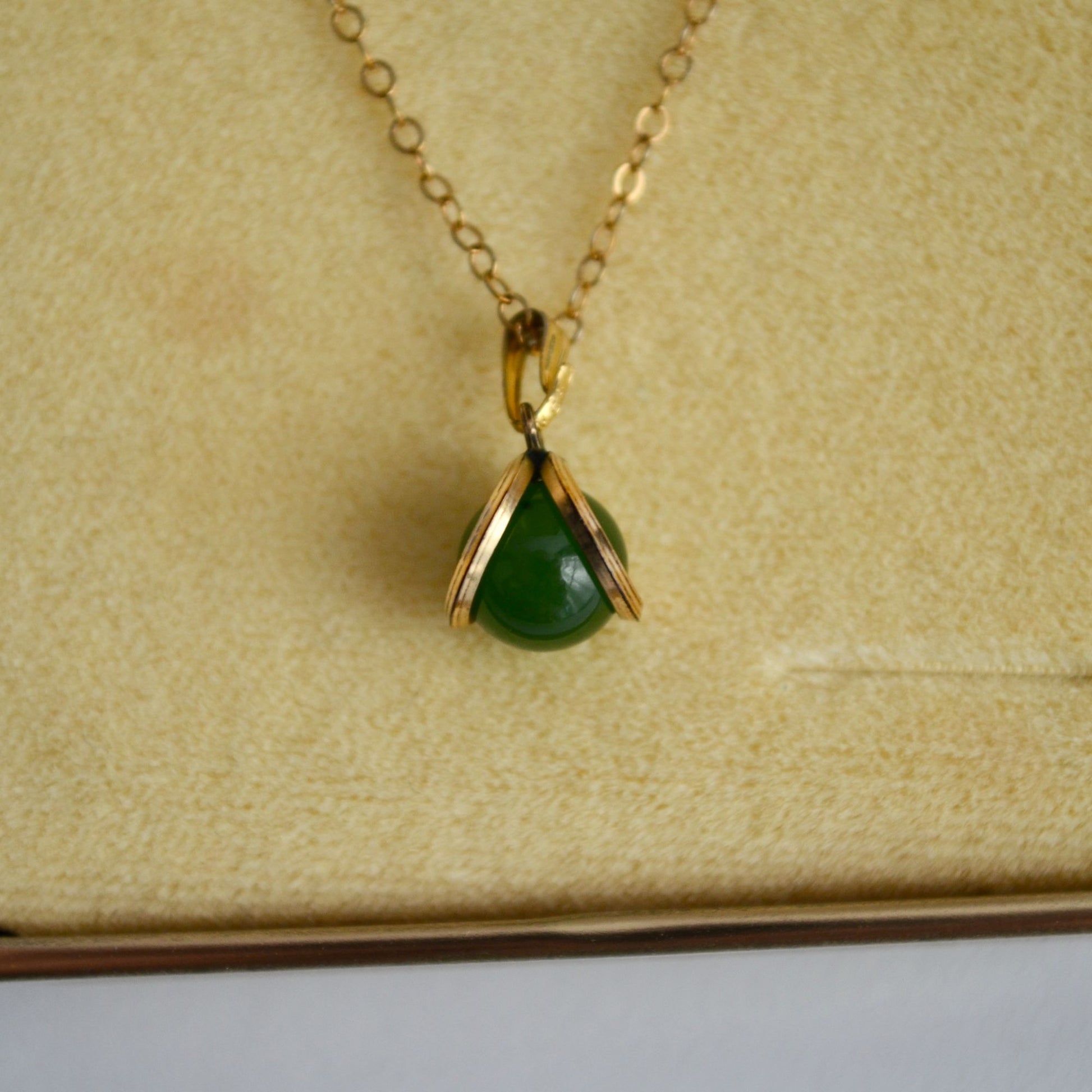 Vintage Gold Filled Genuine Jade Necklace with Box 16" Chain