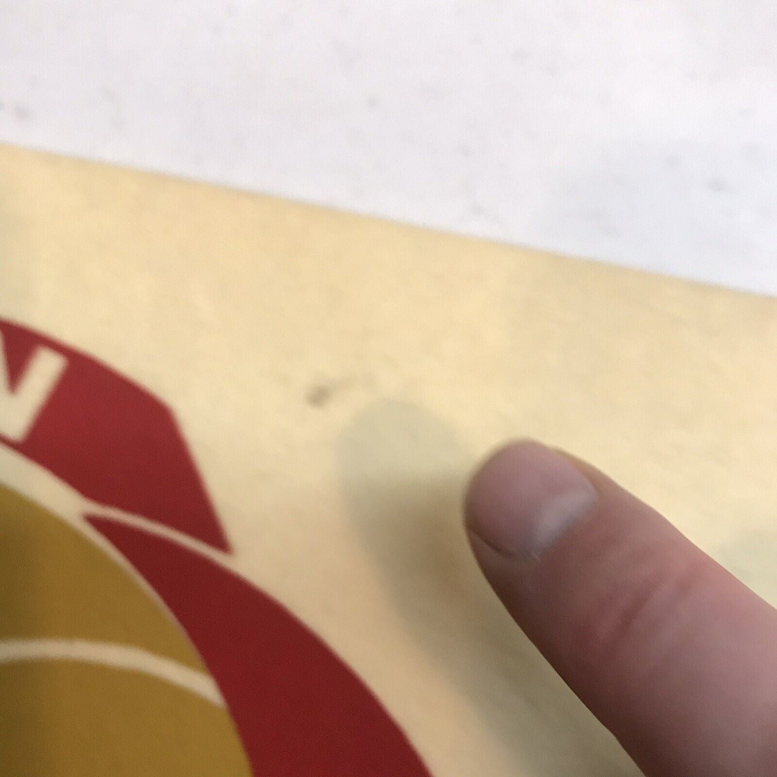 Pennant is yellowing from age a bit. Tip of pennant has some creases and is curved a bit. There are a few small stain/spots on it, but nothing too terrible (see pics). Very cool, vintage NBA pennant!