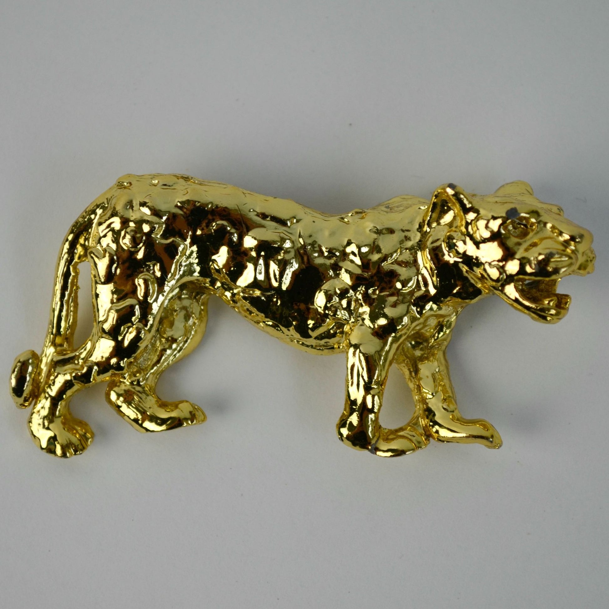 Vintage Jaguar Gold Shiny Brooch Unsigned