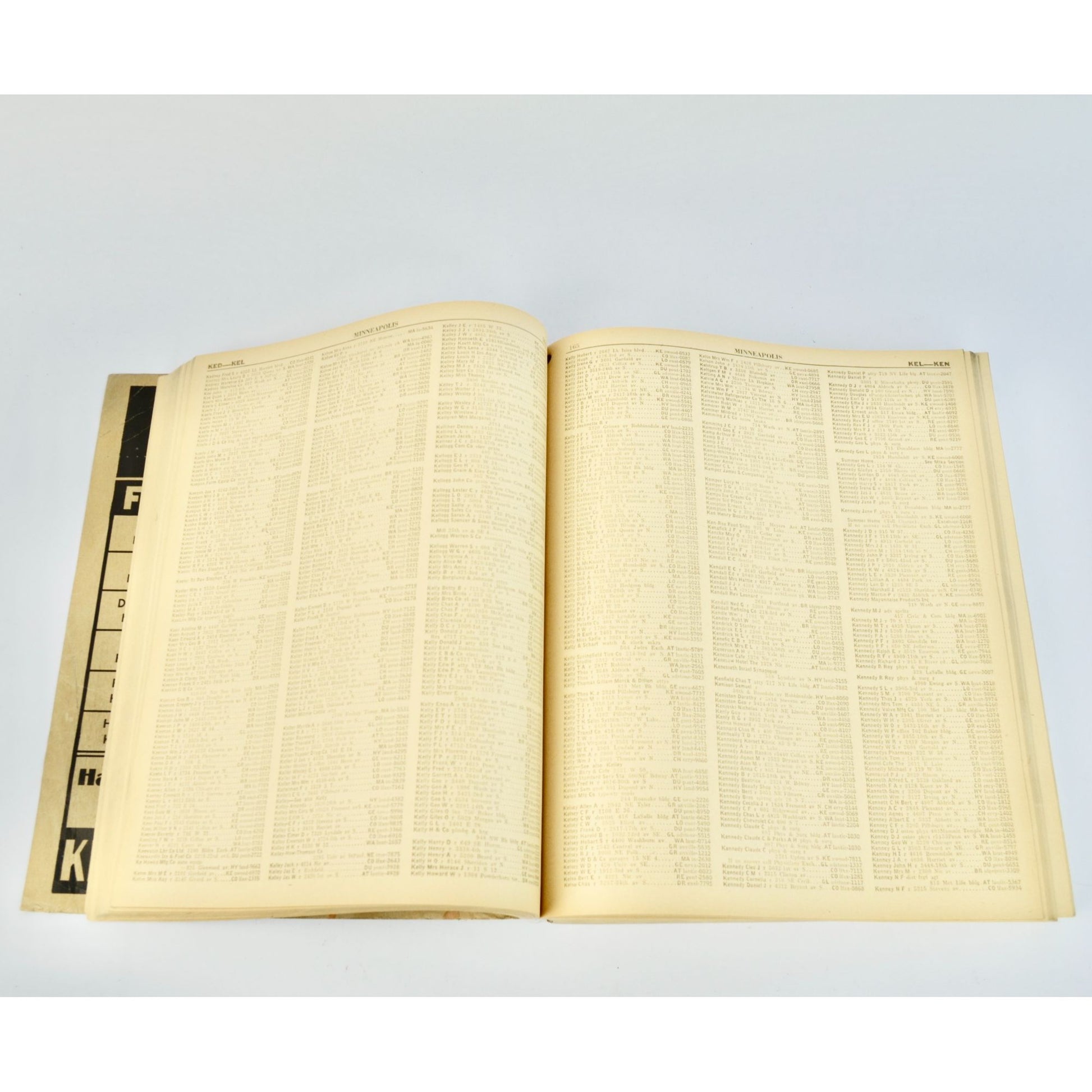 Book shows wear and aging but all the pages are still there. Has some writing on the front cover, various creases, light staining, words are a bit faded but still readable. Very cool, OLD telephone directory from Minneapolis, Minnesota.