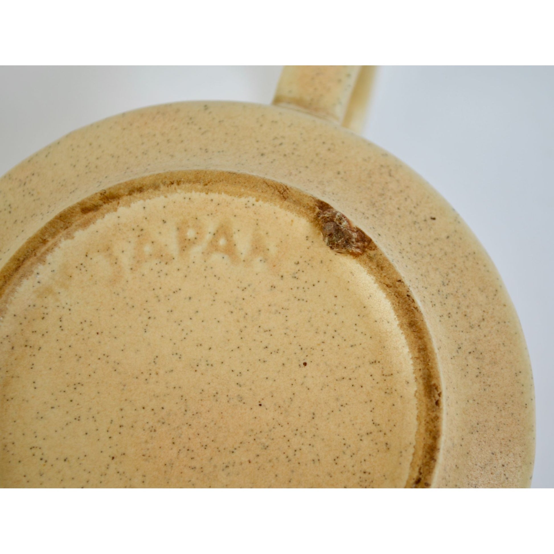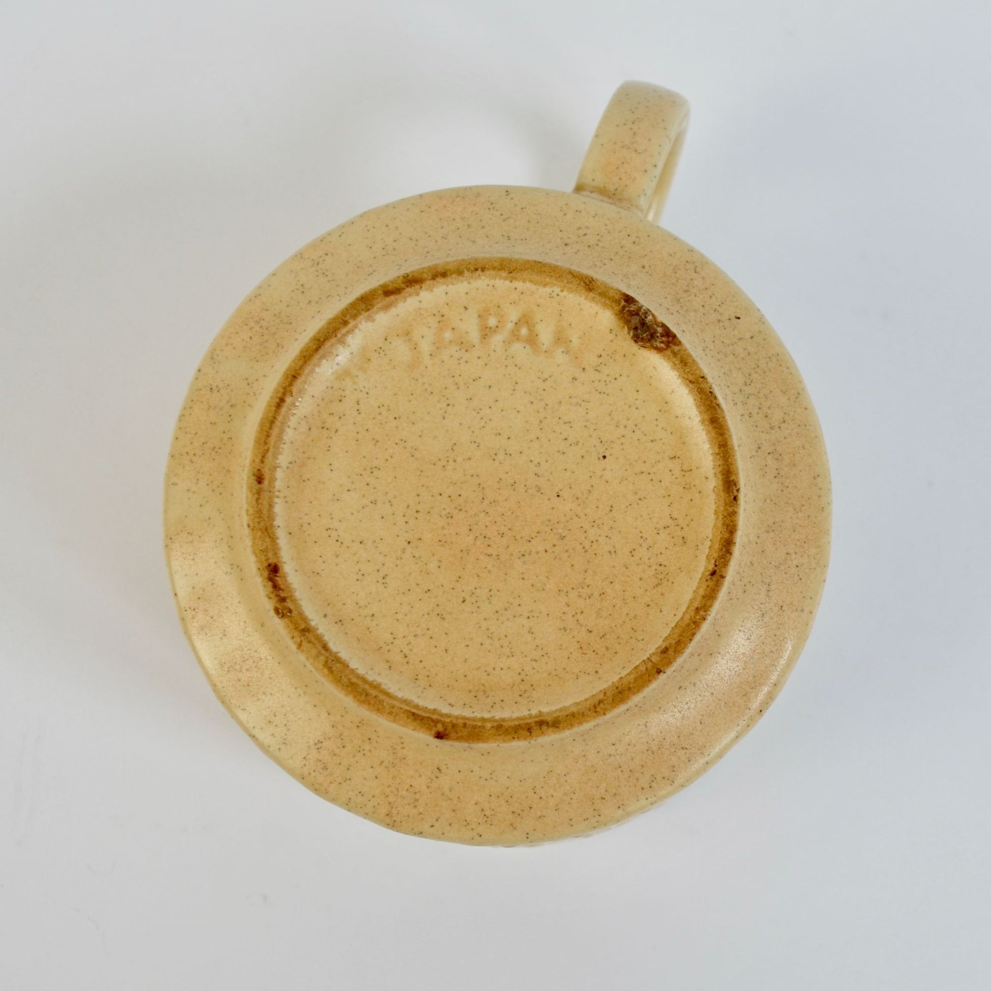 Does have a design flaw on the bottom that causes it to sit not quite flat. No other damage. Measures just under 3" tall x 4" diameter. Marked Japan on the bottom.