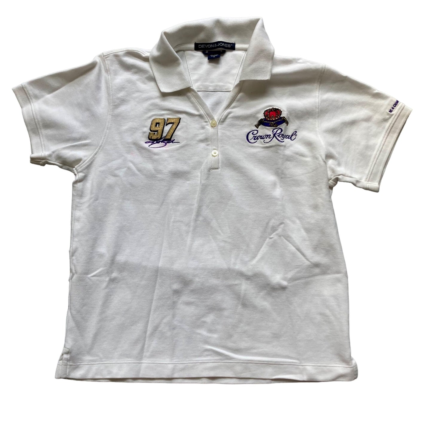 Vintage Kurt Busch #97 Crown Royal Women's Polo Shirt Size S Devon & Jones