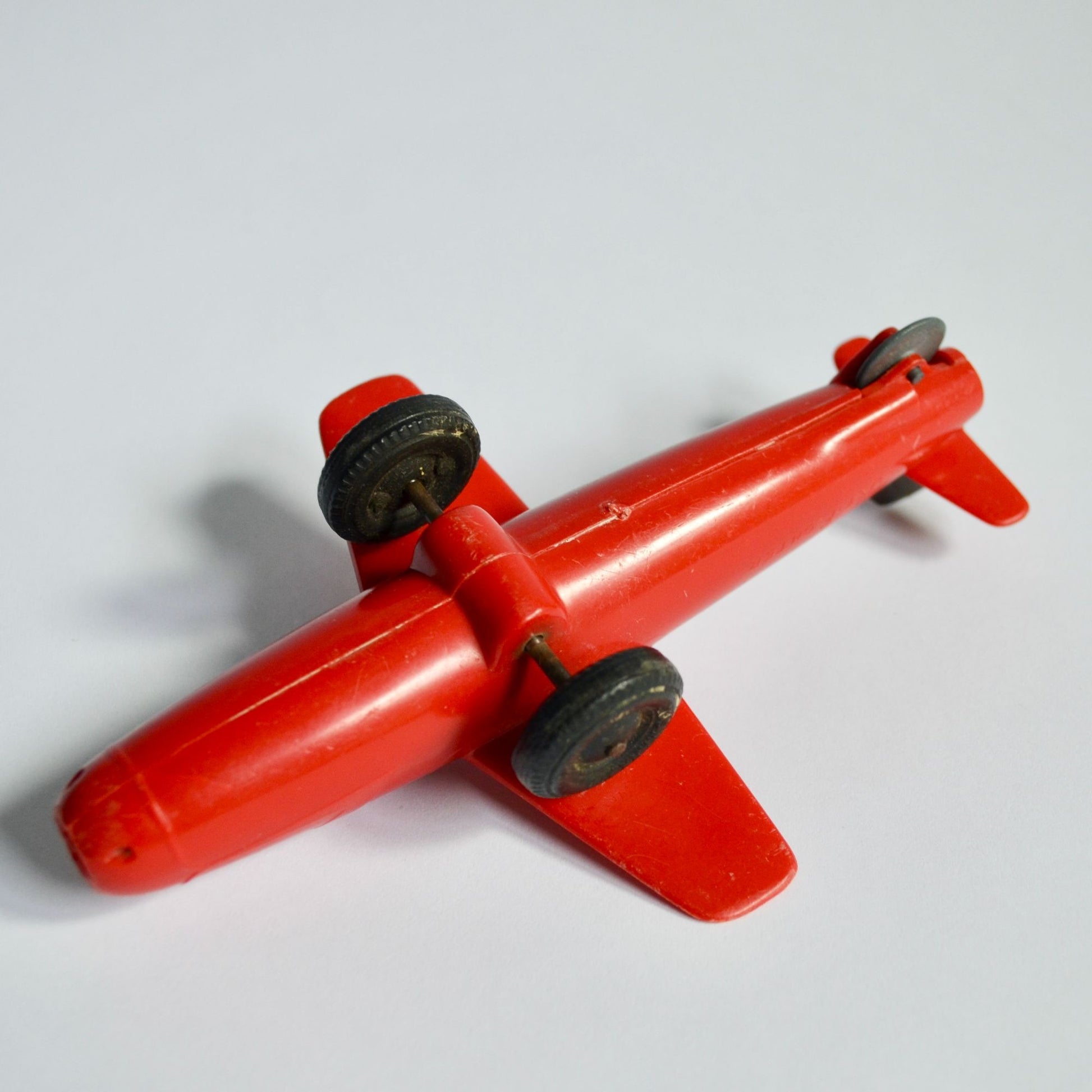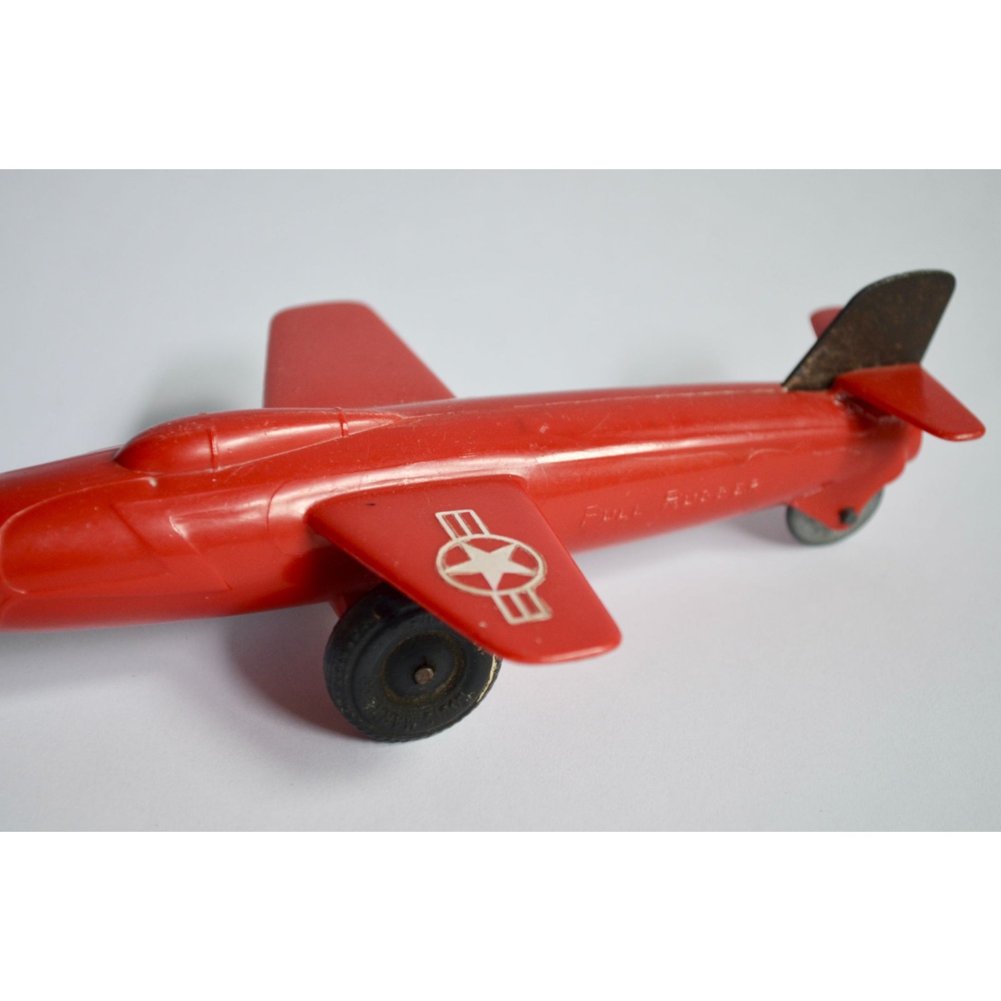 Vintage Marx Toy Pull Rudder Airplane Bell X-1 Experimental Jet Red