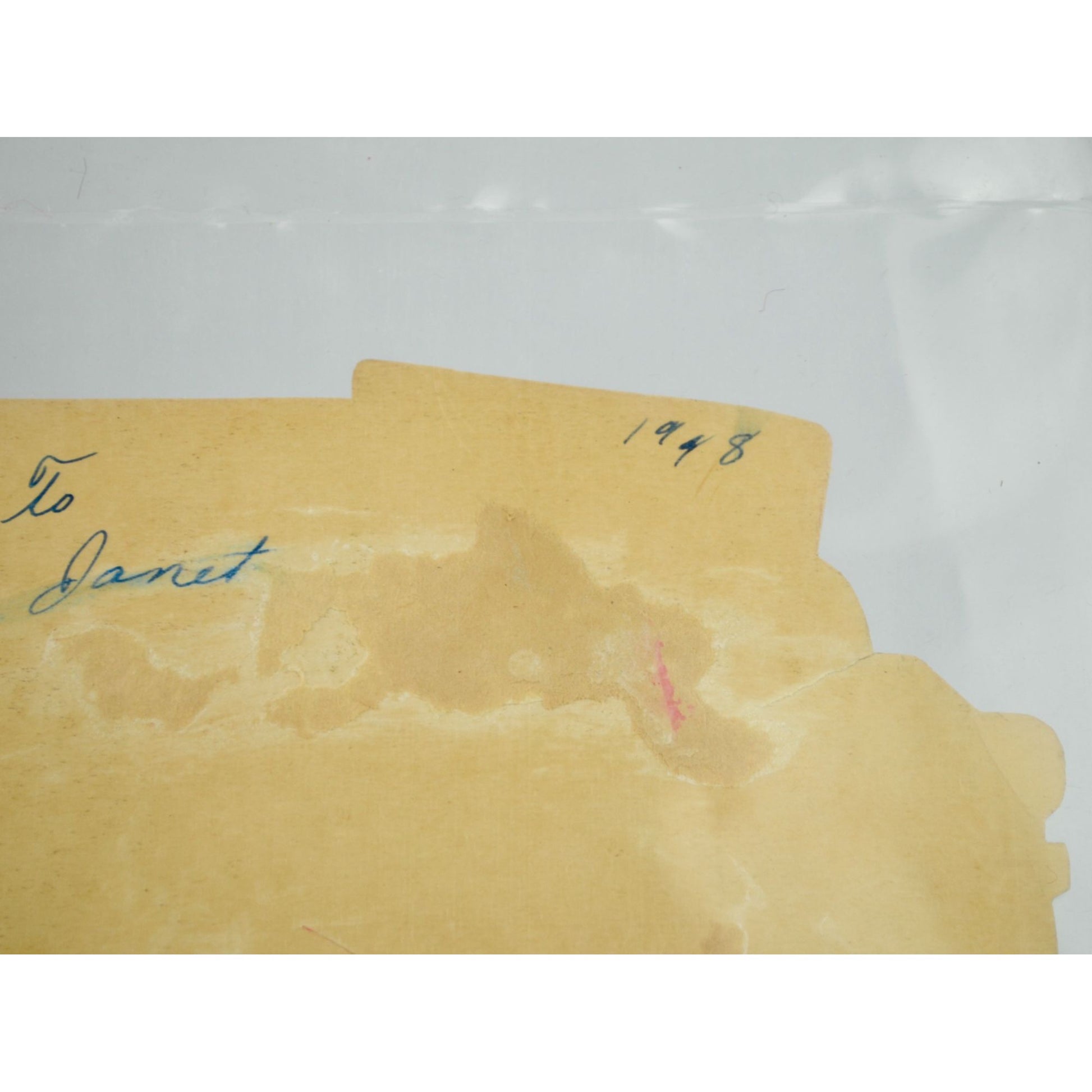 Large card measures 9.5" tall x 8" wide. Minor damage on back. Dated 1948 (handwritten).
