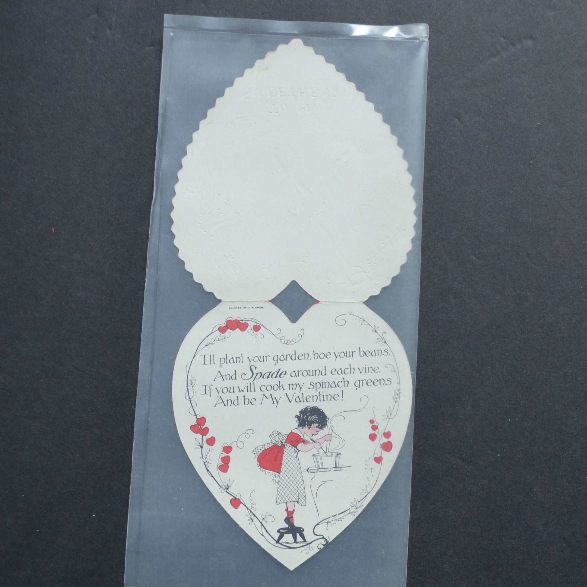 Vintage Red Heart Laser Cut Valentine Card Cupid Shoveling