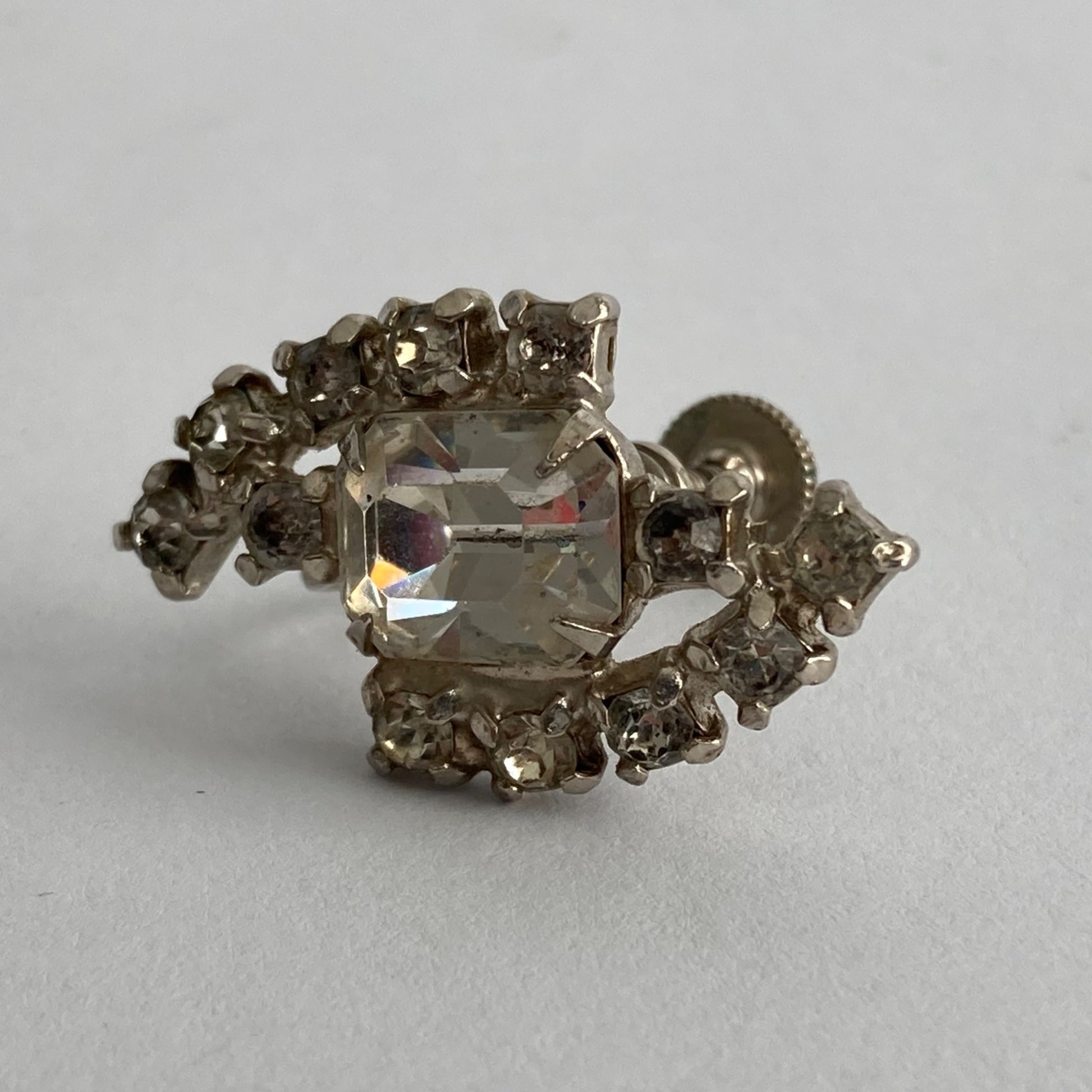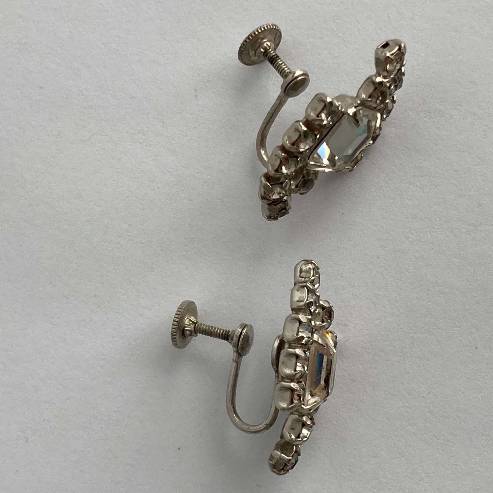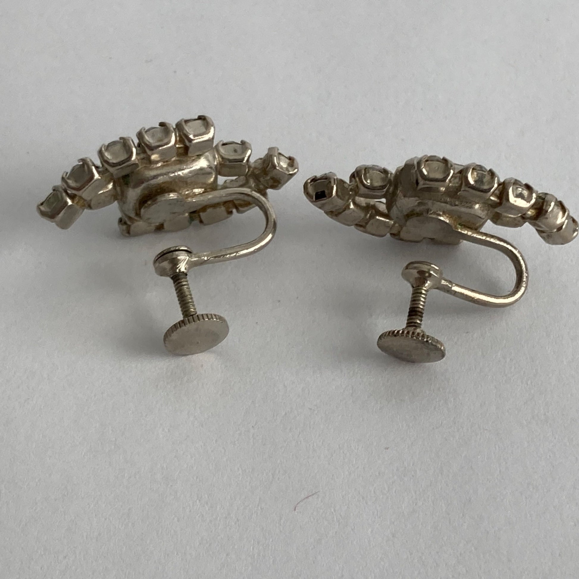 Vintage Rhinestone Silver Screw Back Earrings Pair Screwback