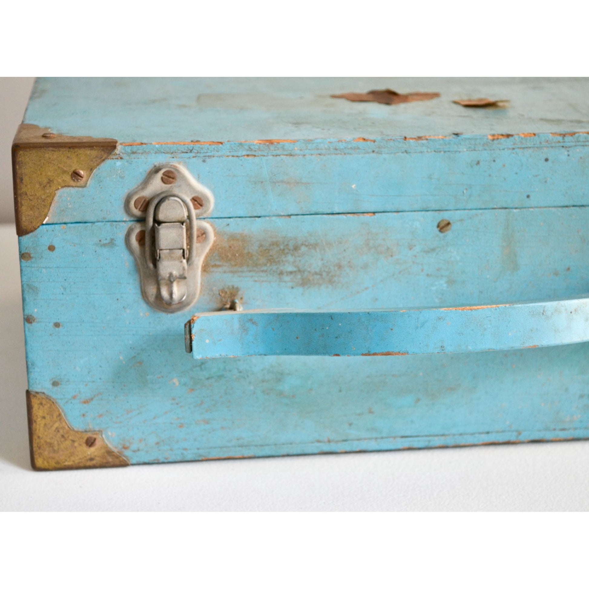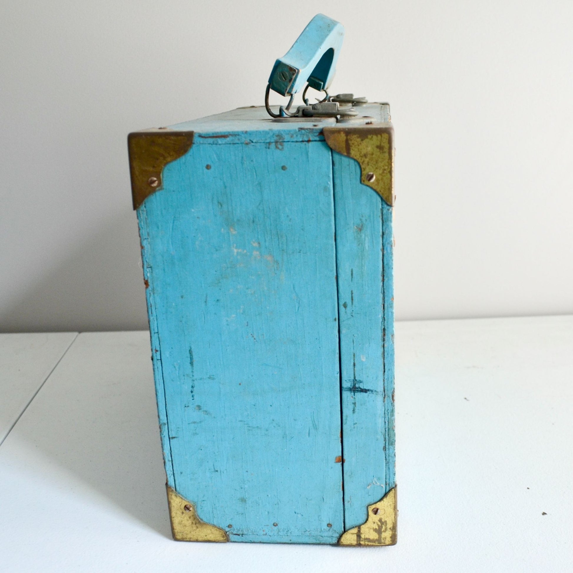 Vintage Roller Skate Wood Case Box Blue "Moulton's Rollerdrome Rush City, MN"