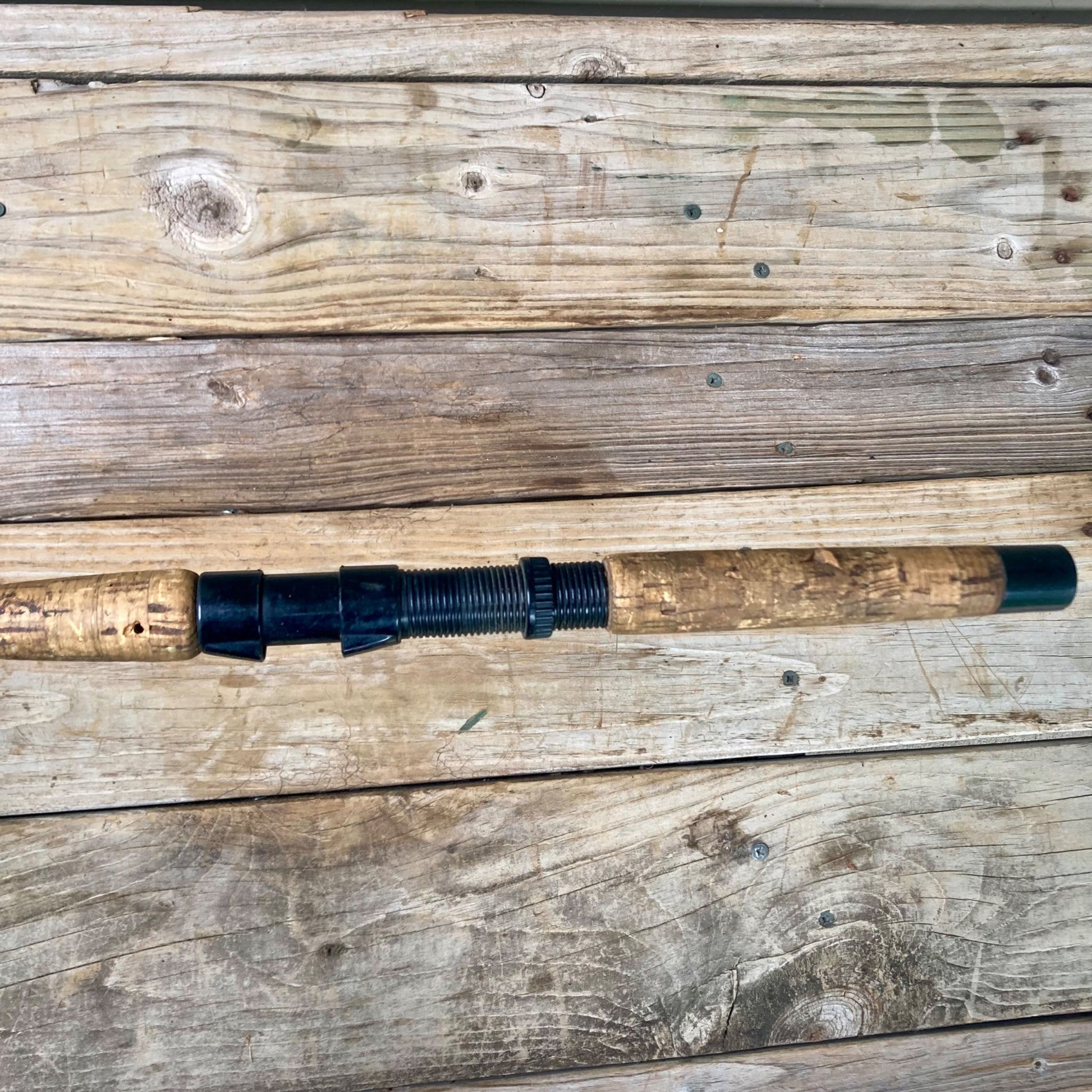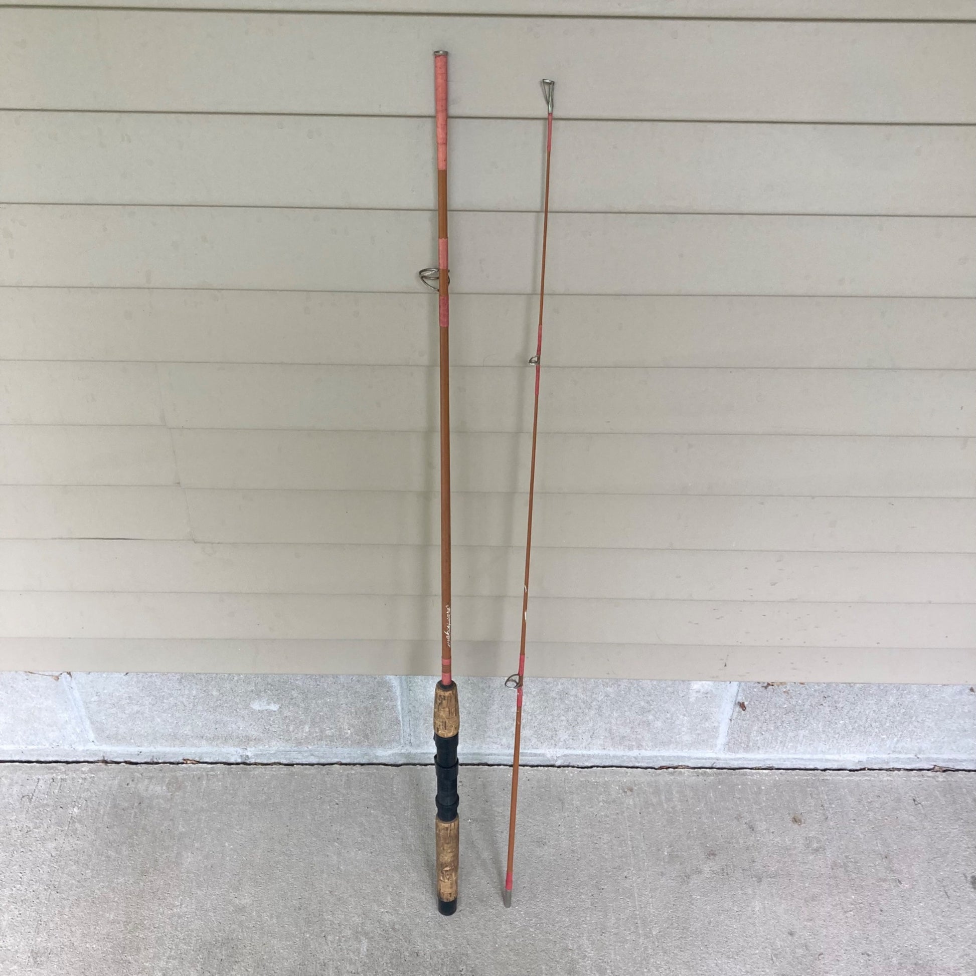This is a 6', 2-piece spinning rod. Rod has some small white paint marks on it in places, otherwise it shows general wear/aging but in good structural shape.