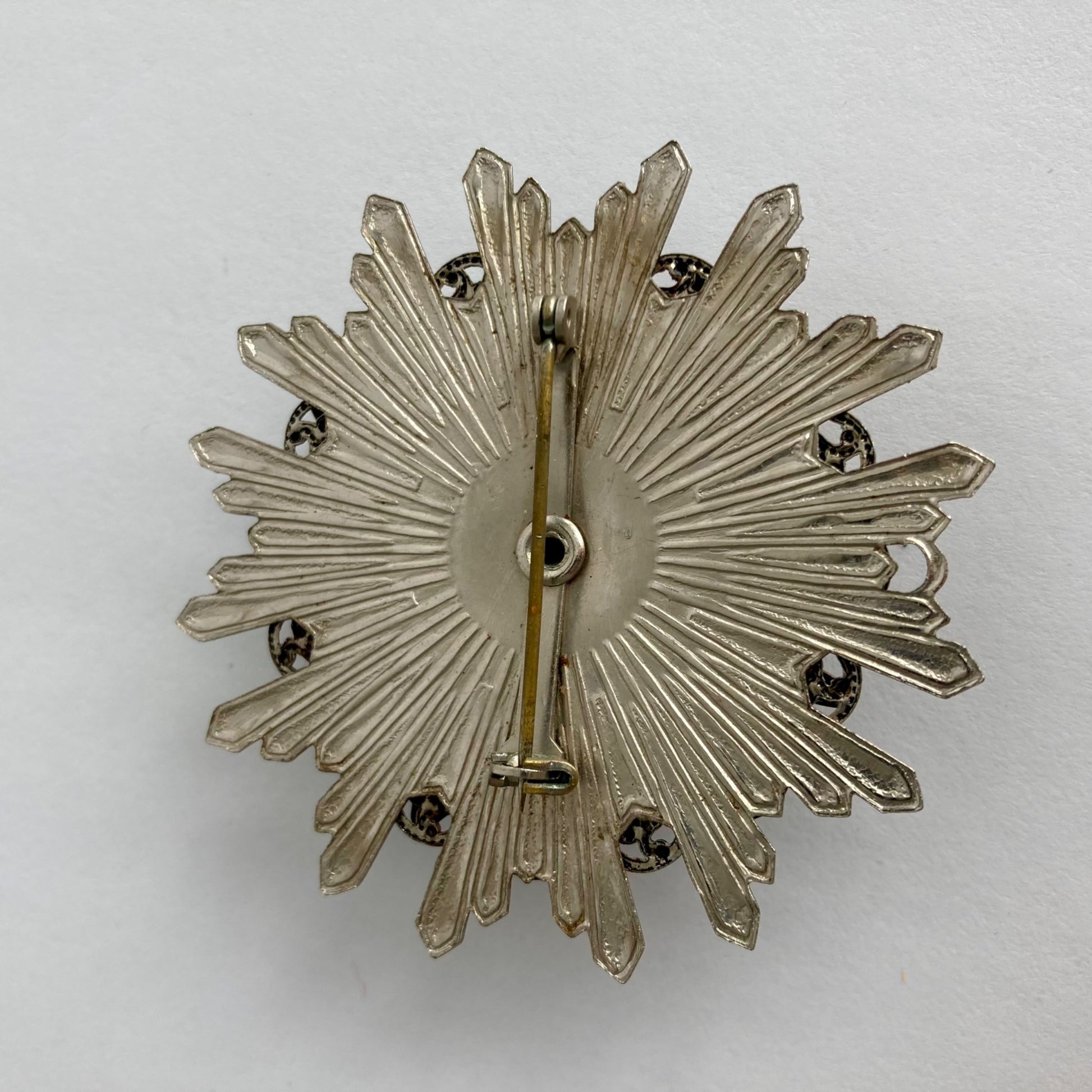Vintage Silver & Black Floral Starburst Snowflake Brooch Black Stone Unsigned
