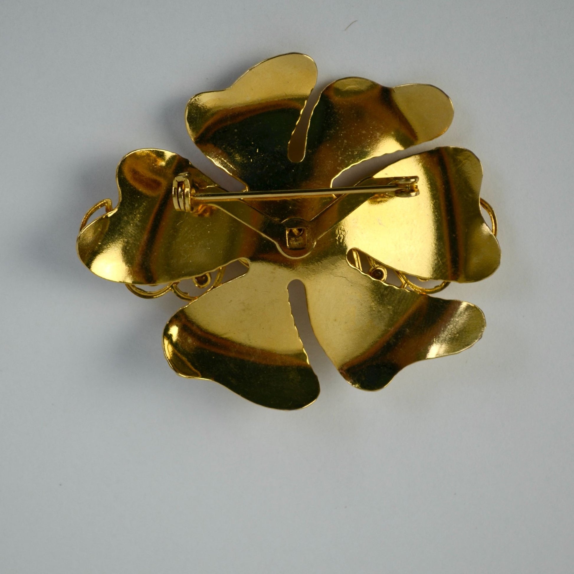 Vintage Textured Polished Gold Tone Red/Pink Rhinestone CZ Brooch