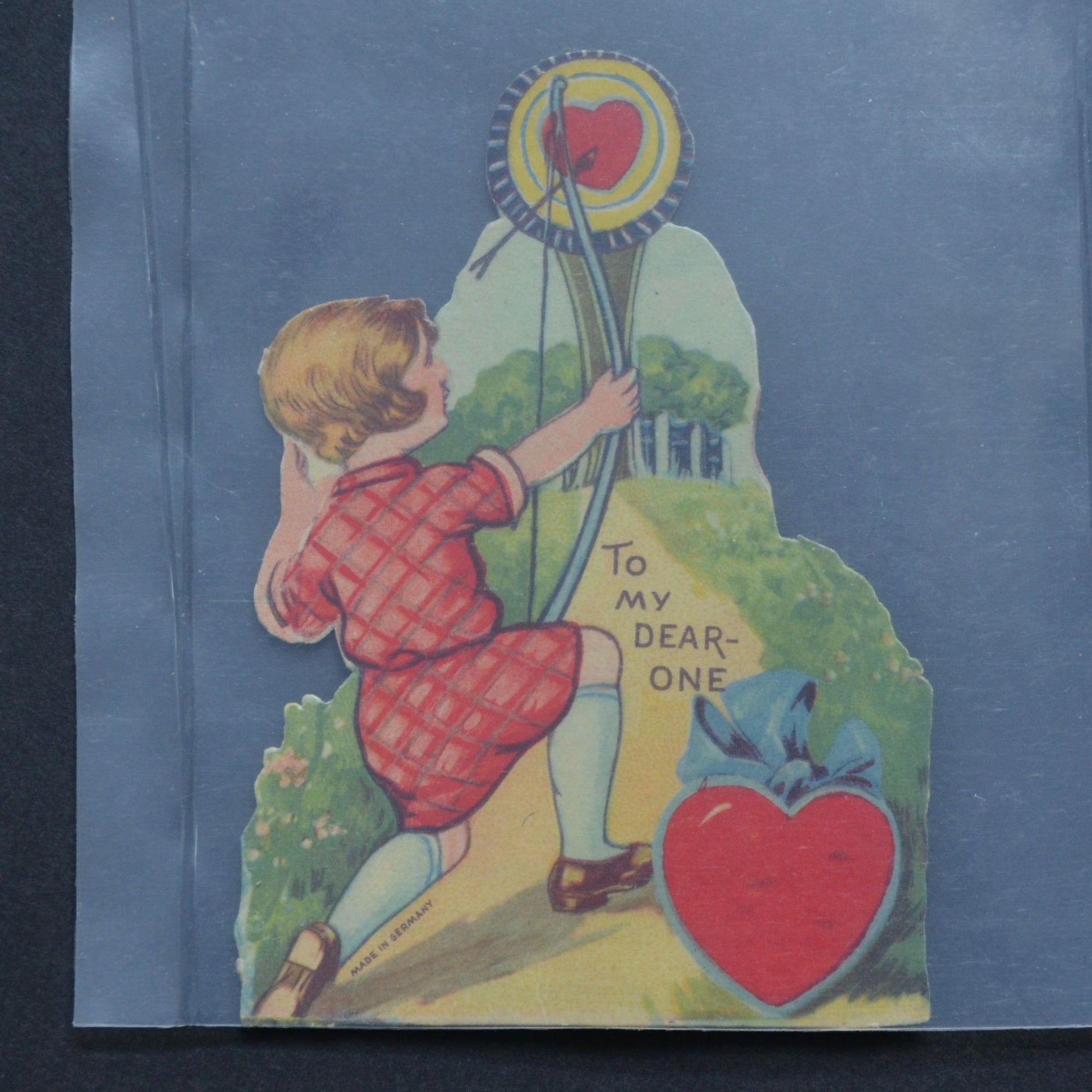 Vintage Valentine Card Germany To My Dear One Girl Bow Arrow
