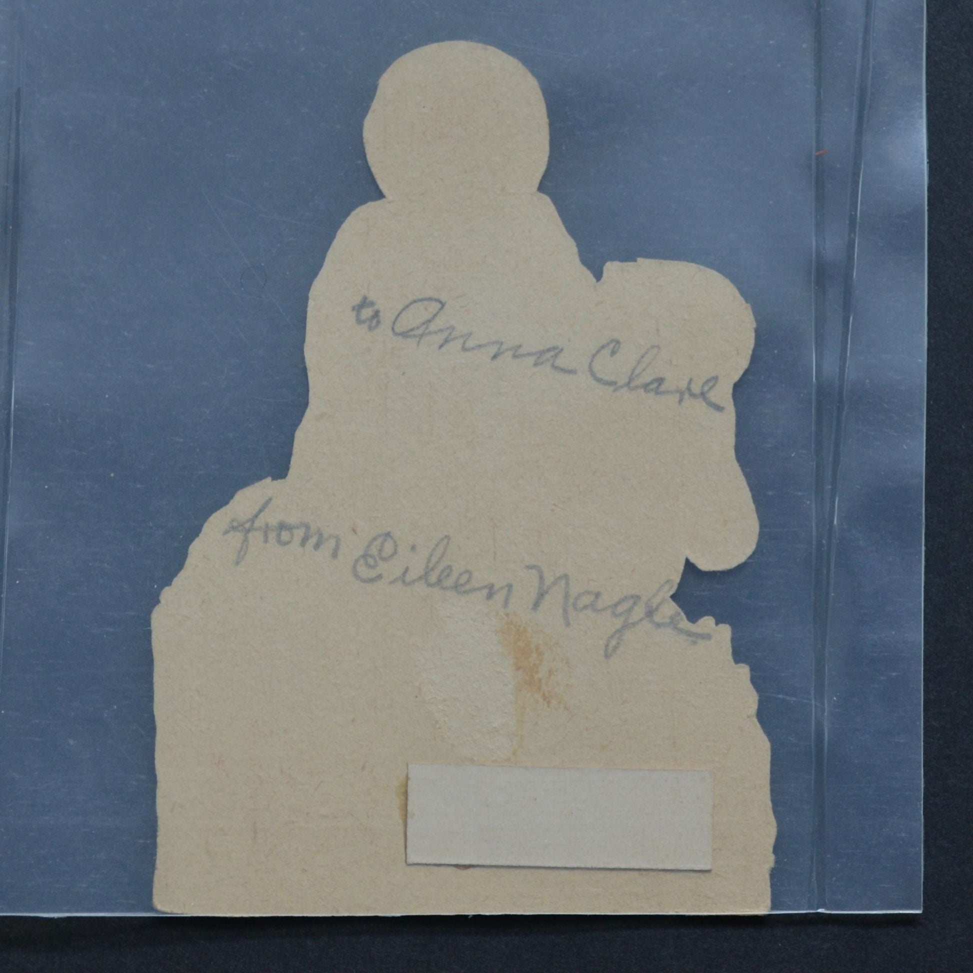 Good condition. Stored in sealed plastic as shown. Card measures 4.5" tall x just over 3" wide. Pencil on the back and a slight tear in card surface (back) probably from being glued into a scrapbook?