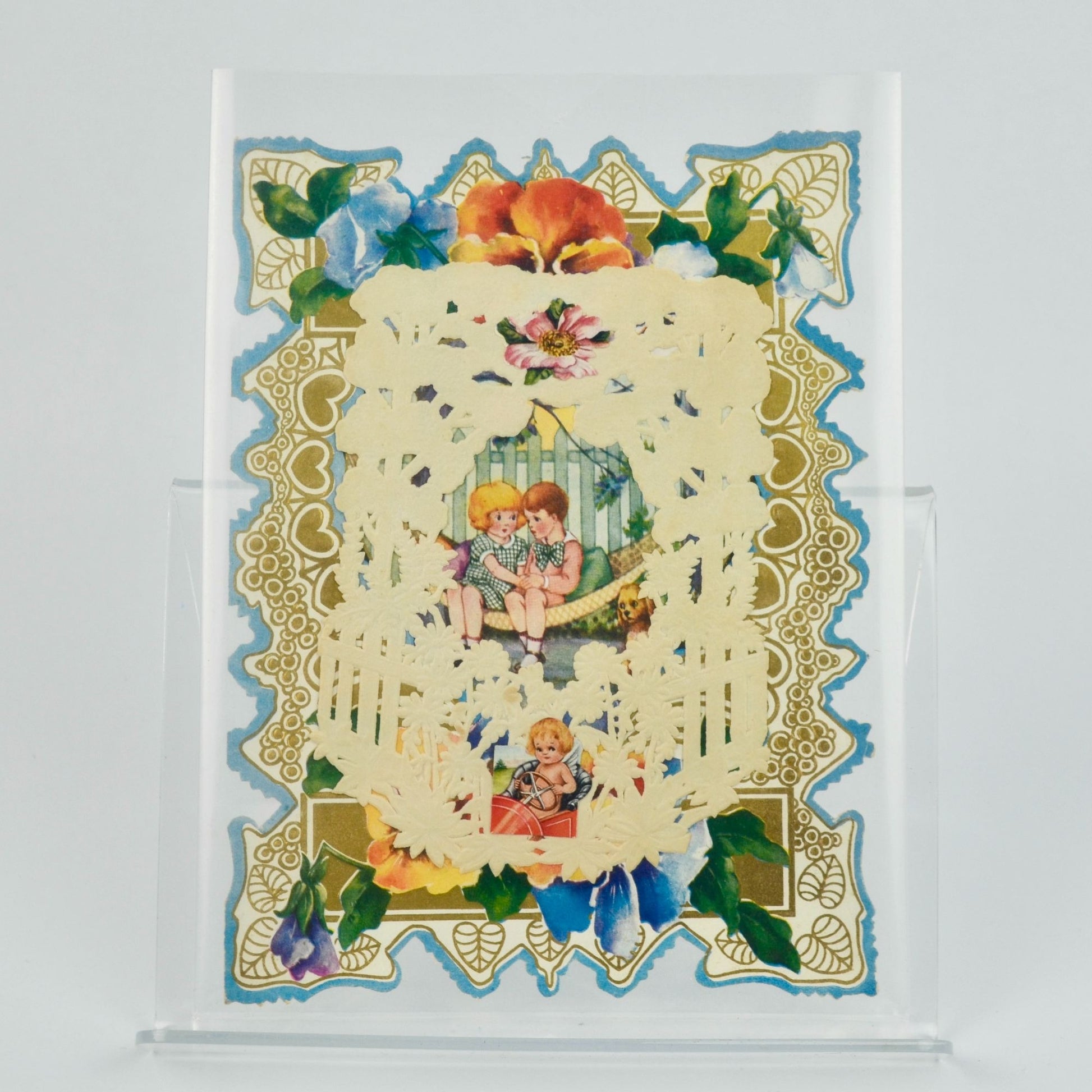 Vintage Valentine Card Lace Front Boy Girl Hammock