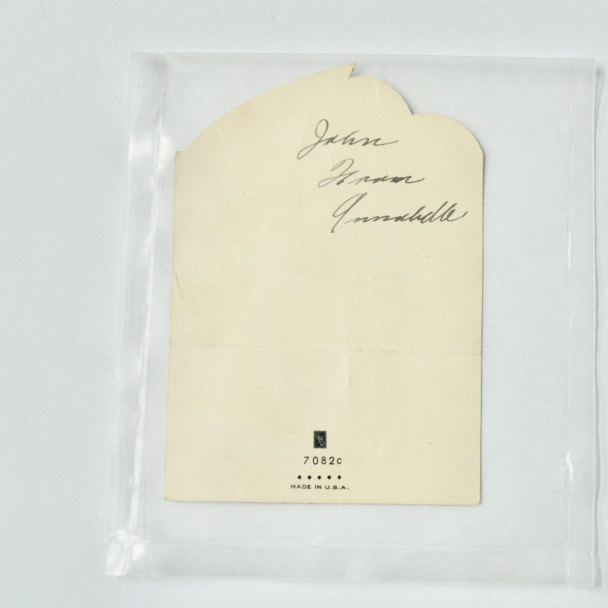 Has writing/word crossed out on front. Good condition. Stored in plastic sleeve as shown. Measures approximately 4.5" tall x 3 1/8" wide.
