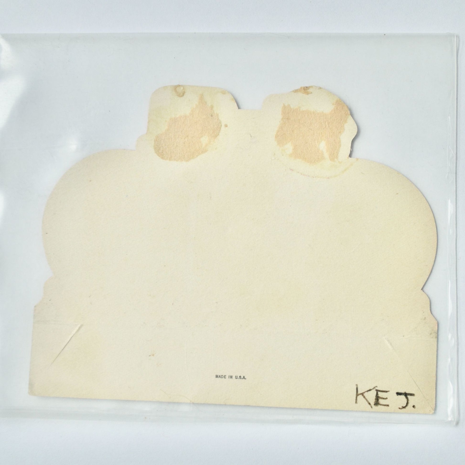 Good condition. Stored in plastic sleeve as shown. Measures approximately 3.75" tall x 4.75" wide.