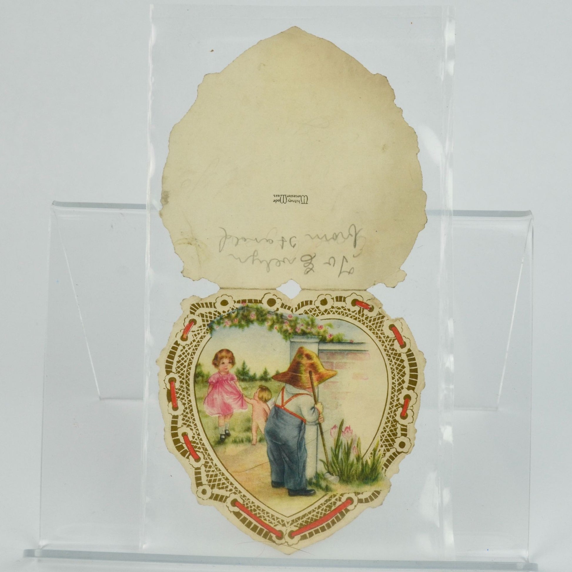Vintage Valentine's Day Card Cupid Boy Girl Gardening