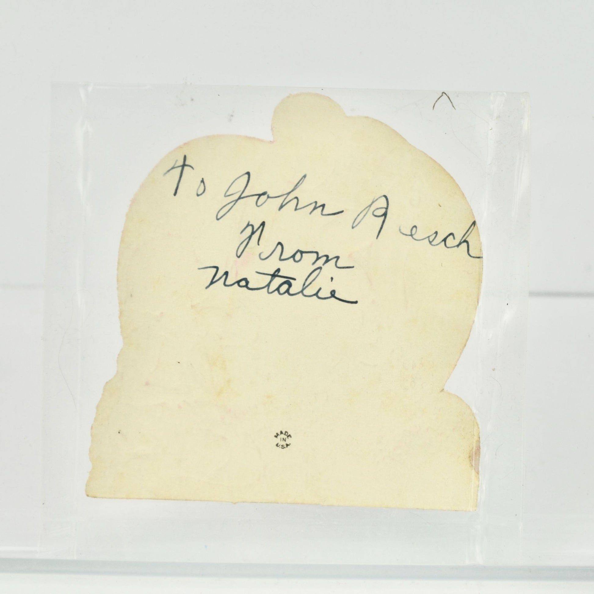 Good used condition. Stored in a plastic sleeve as shown. Measures approximately 3.25" tall x 3" wide.