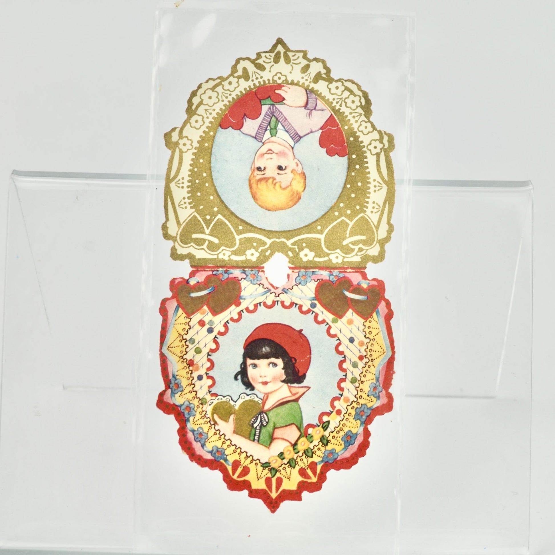 Vintage Valentine's Day Die Cut Heart Card Boy Girl