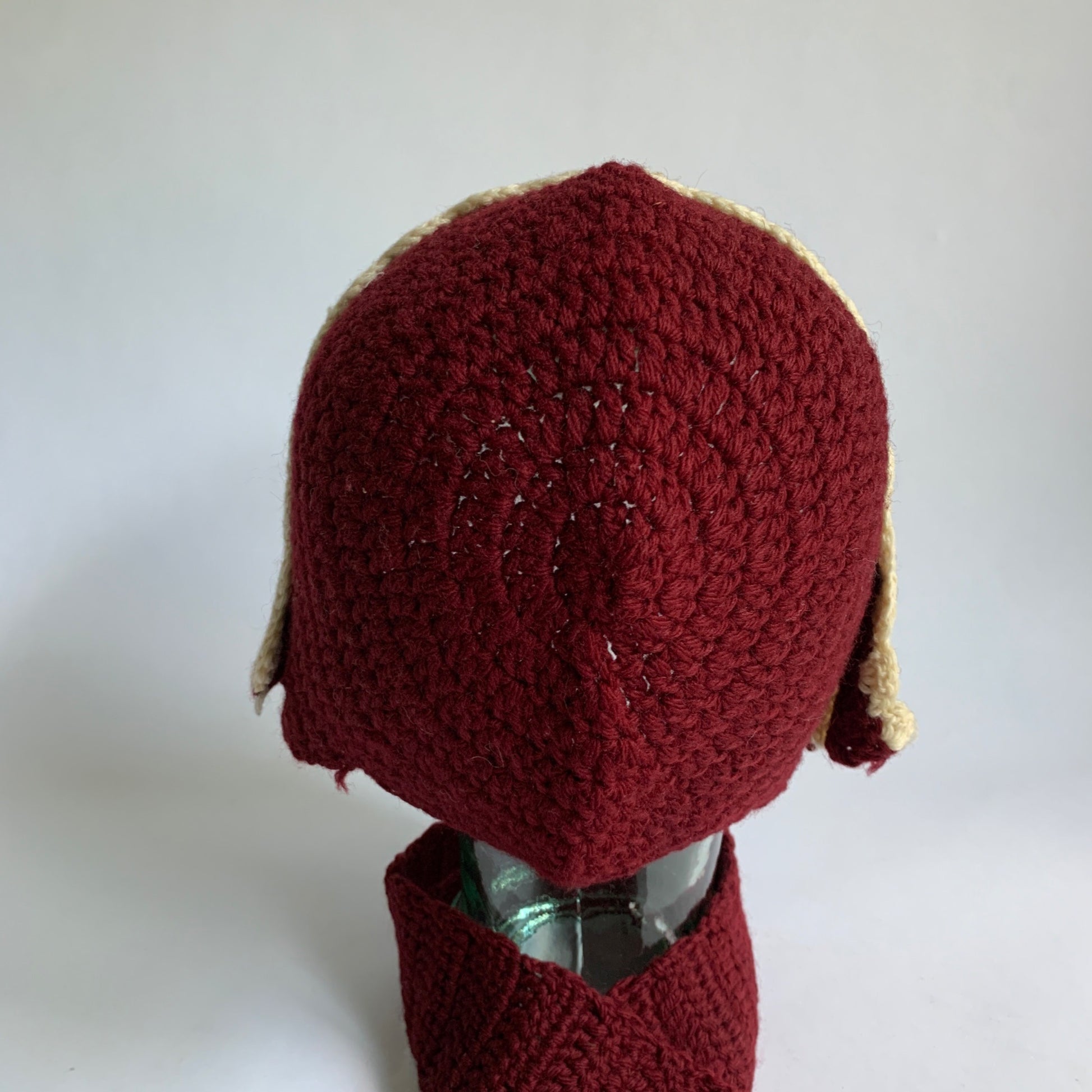 Vintage Women's Knit Hat & Small Scarf Set Maroon Cream
