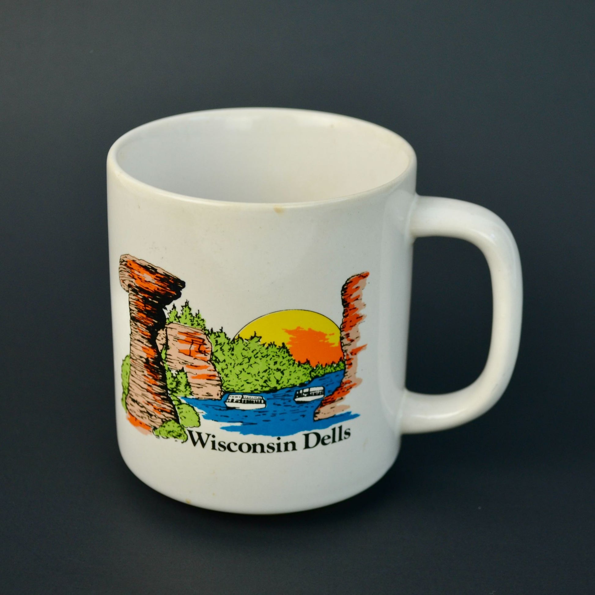 Good condition. Does have some staining inside from coffee. Measures about 3.75" tall x 3.25" diameter.
